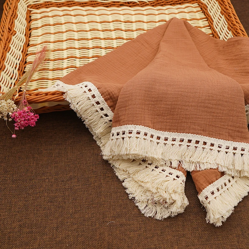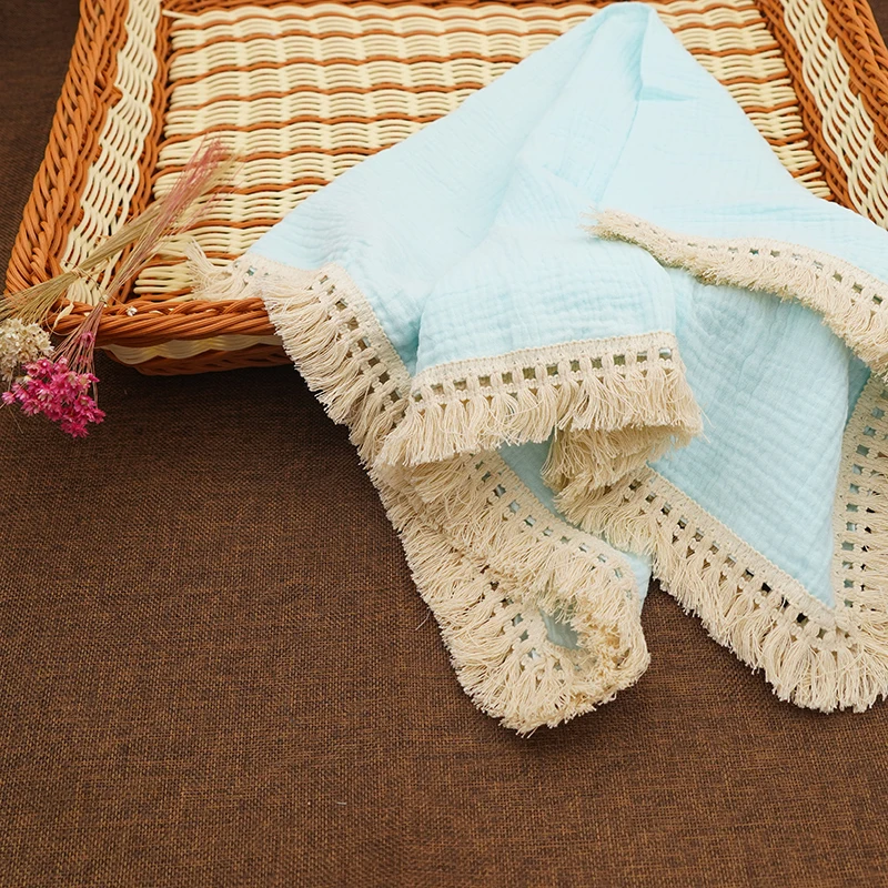 Мягкое хлопковое детское одеяло, пеленка для младенцев с бахромой, ...