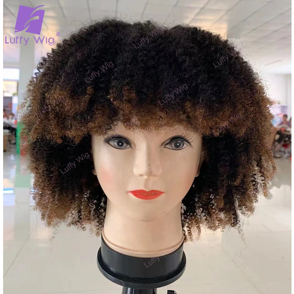 Парик из человеческих волос омбре с челкой, бразильские волосы Remy, афро кудрявые вьющиеся парики, без шнуровки, без клея, плотность 200 для черных женщин LUFFY