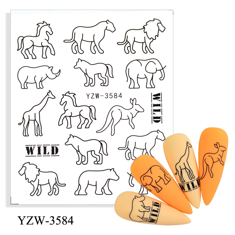 Черный слонДинозаврсова стикер для дизайна ногтей Наклейка с водяными знаками слайдер животные серии водный перевод Маникюр украшение для дизайна ногтей