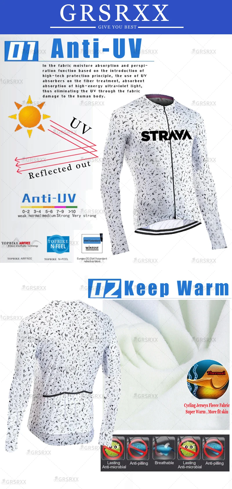 STRAVA мужской велосипедный комплект Зимний велосипед MTB командные гонки теплые велосипедные комплекты с ультрафиолетовым покрытием с длинным рукавом велосипедная спортивная одежда