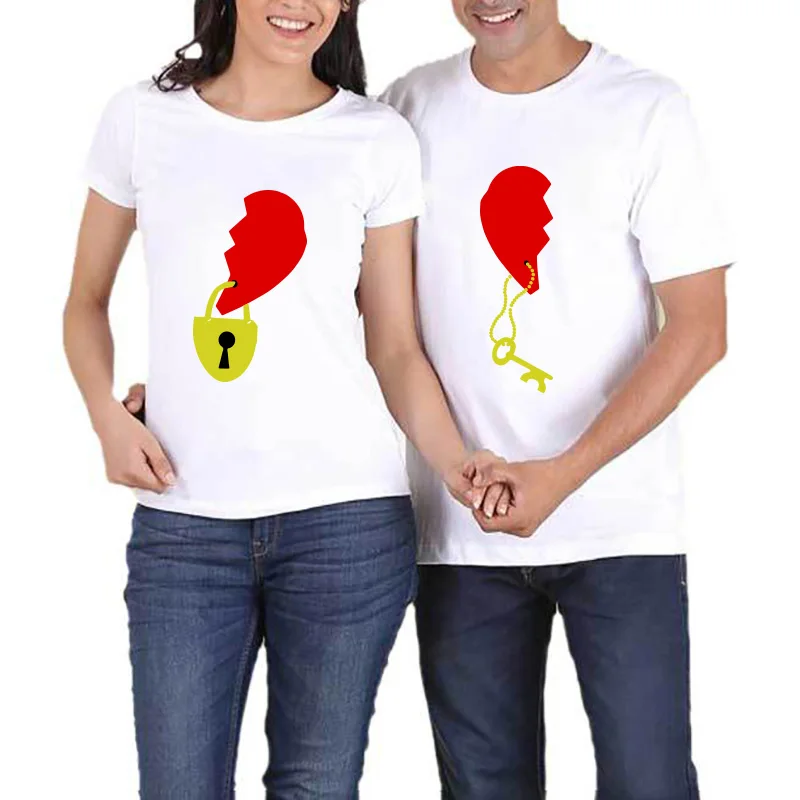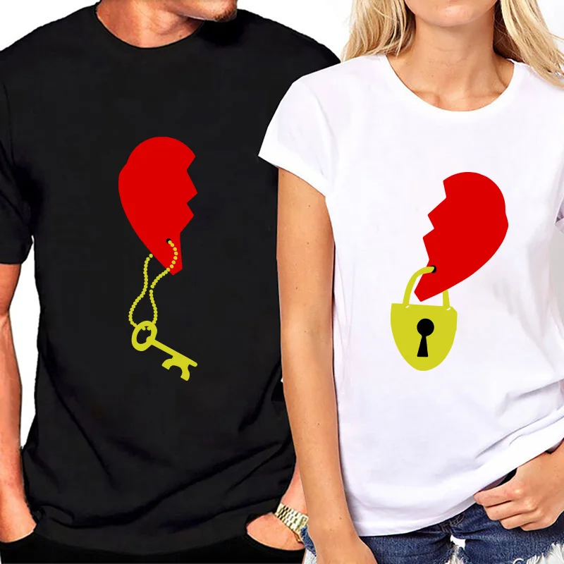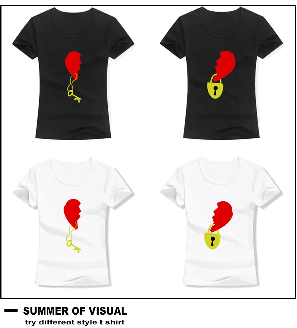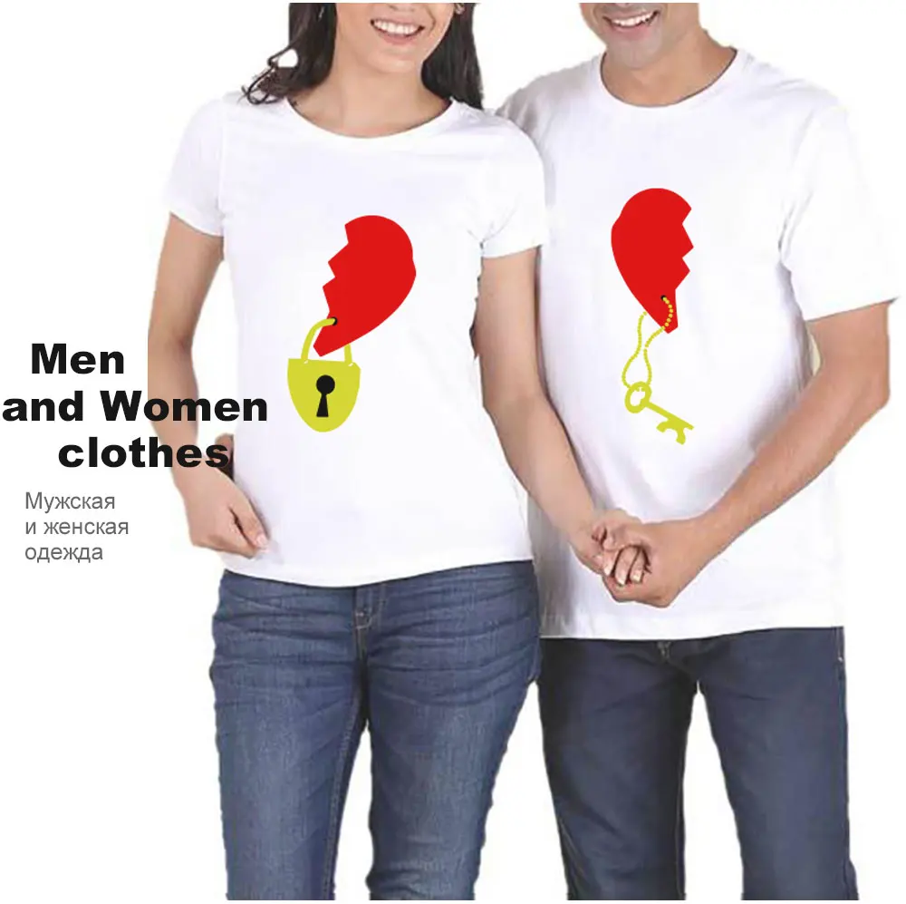 Парная Повседневная футболка для мужчин и женщин, парная футболка с принтом Love Key, модная уличная одежда, футболка с коротким рукавом, топы, одежда