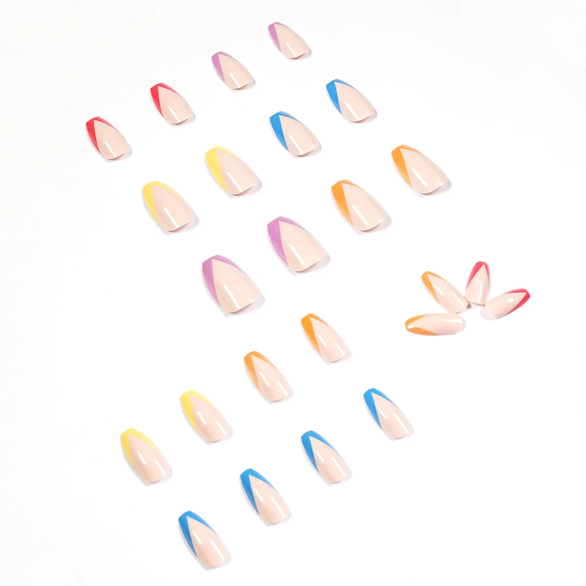 Накладные ногти, 24 шт., радужная французская серия, полное покрытие, клей для ногтей, инструменты для самостоятельного маникюра и дизайна ногтей
