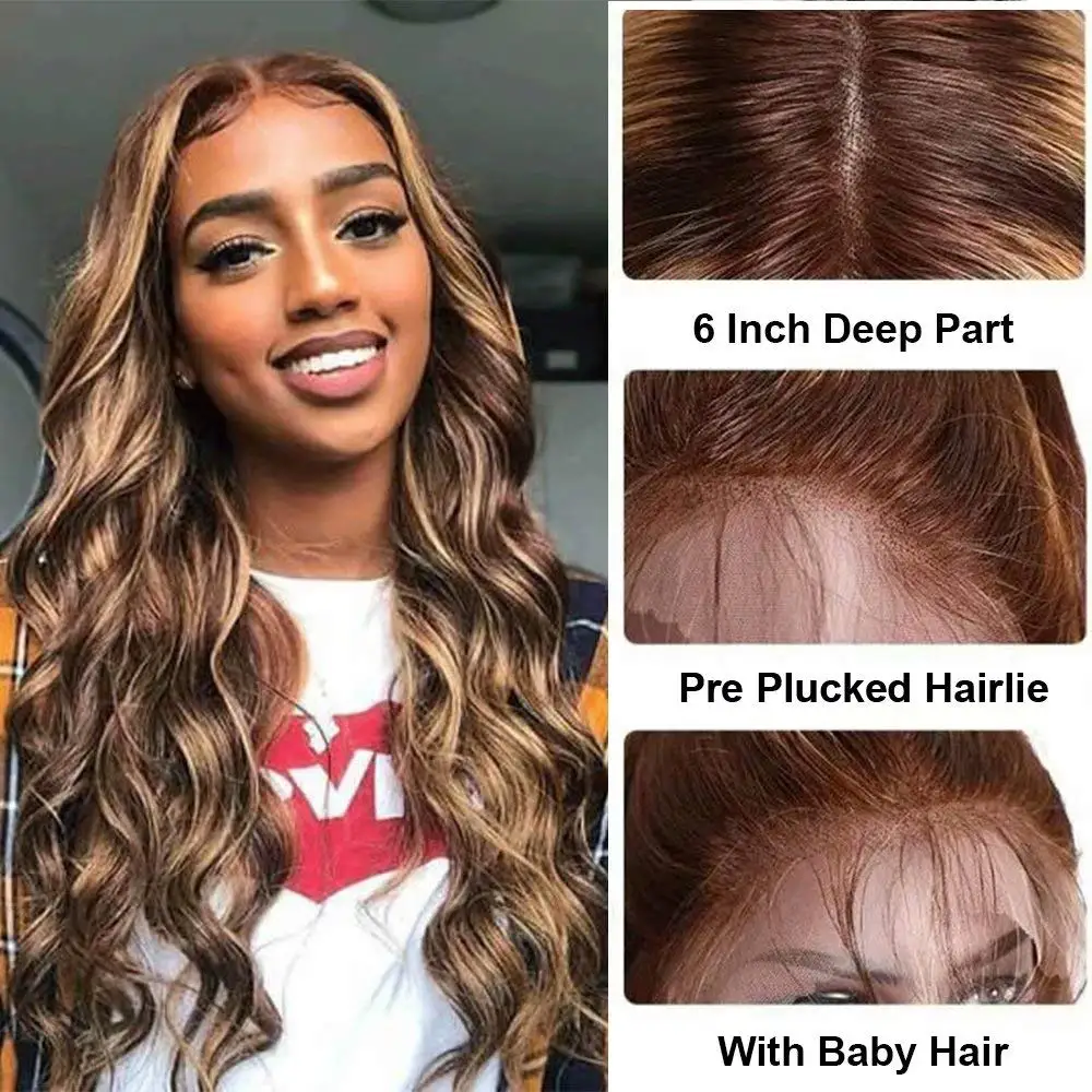 Выделите парик, волнистый парик с кружевом спереди, парик из натуральных волос. 13x4 кружевной передний парик. Бразильский Волнистый парик для волос, парик для женщин, прямые парики для черных женщин, модные парики для афро-американских коричневых кружевных фронтальных париков для женщин, длинный волнистый цветной парик