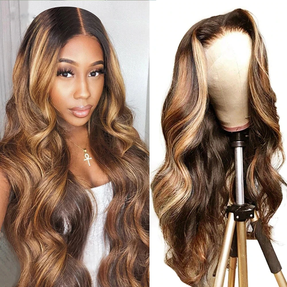 Maxine волосы тела волны хайлайтер кружева передний парик 180% хайлайтер парик человеческие волосы Омбре коричневый блонд кружева передний парик для женщин