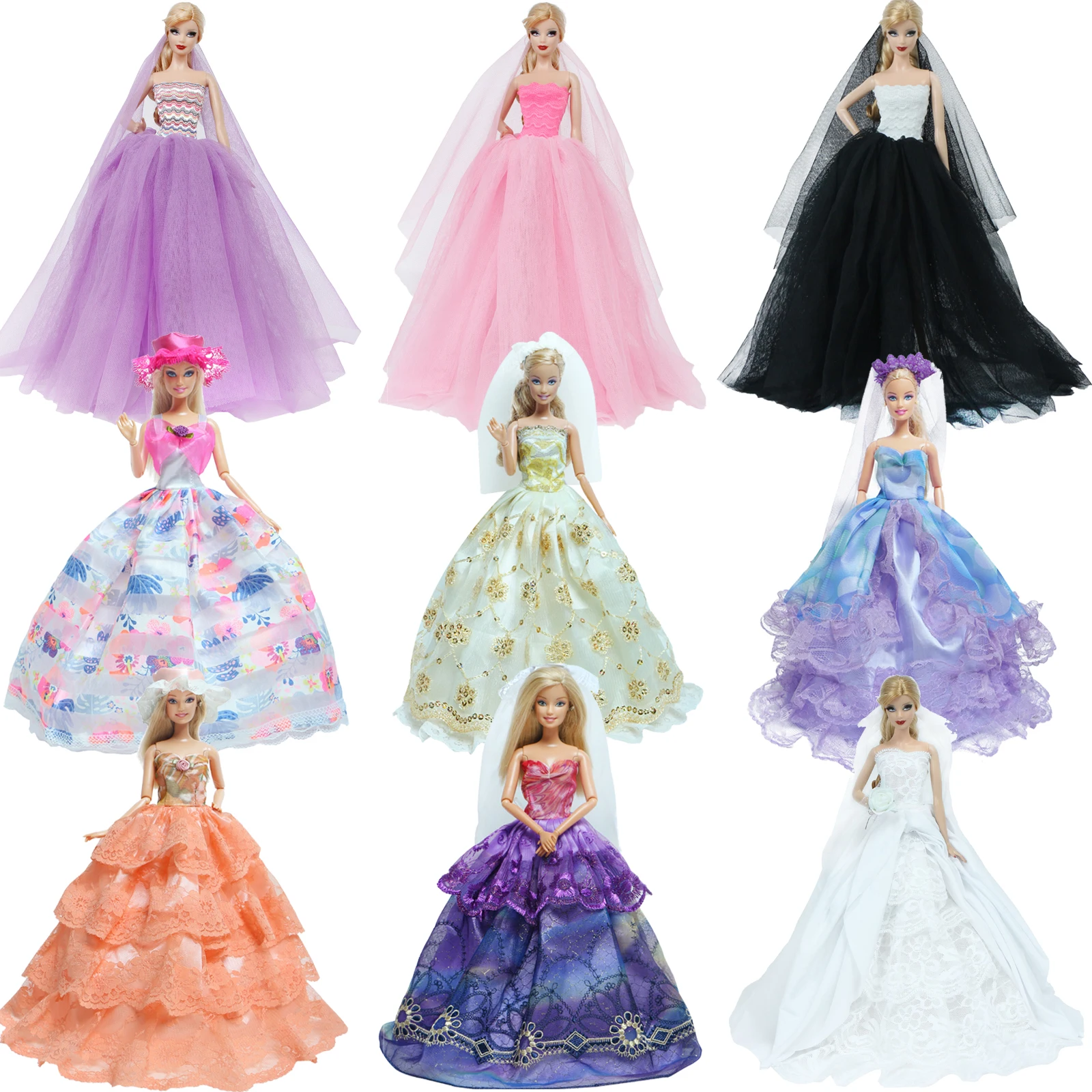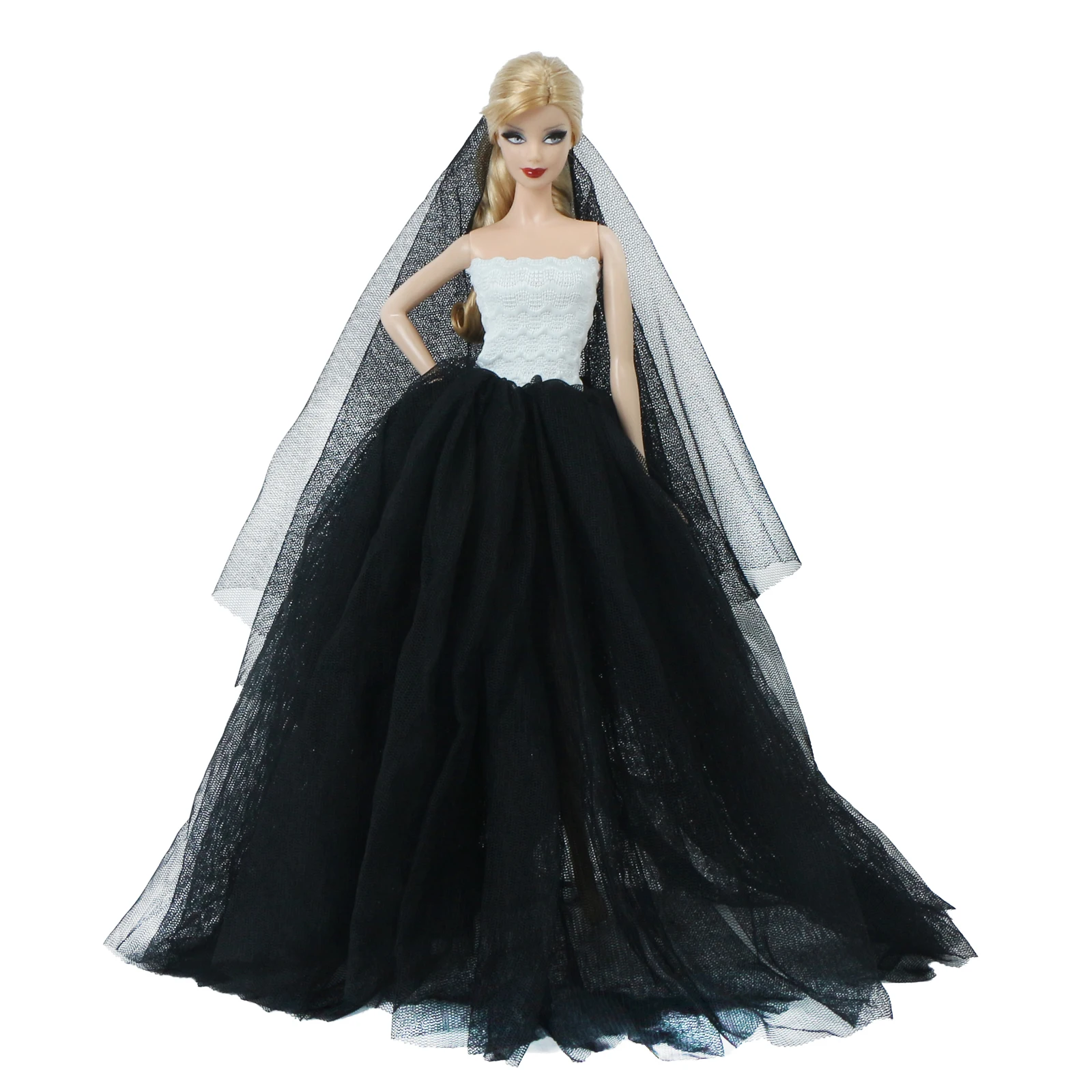 Элегантная женская многослойная юбка с вуалью и шляпкой, свадебная одежда, наряд для Барби, платье принцессы для куклы, 1 комплект, аксессуары для кукол игрушки