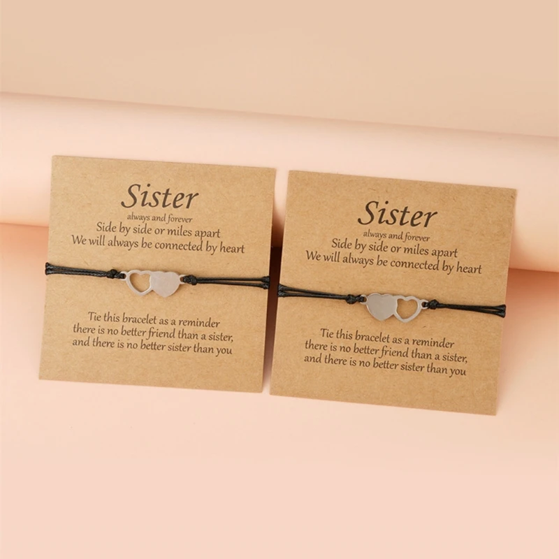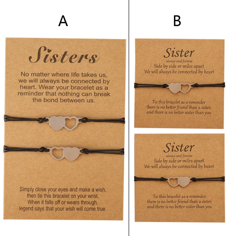 Набор из 2 предметов для сестер, креативный браслет из нержавеющей стали в форме сердца для друзей в европейском и американском стиле