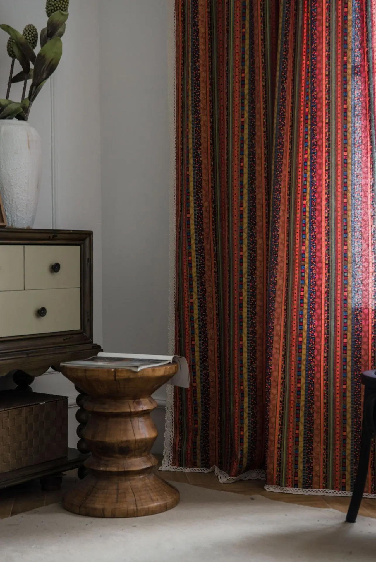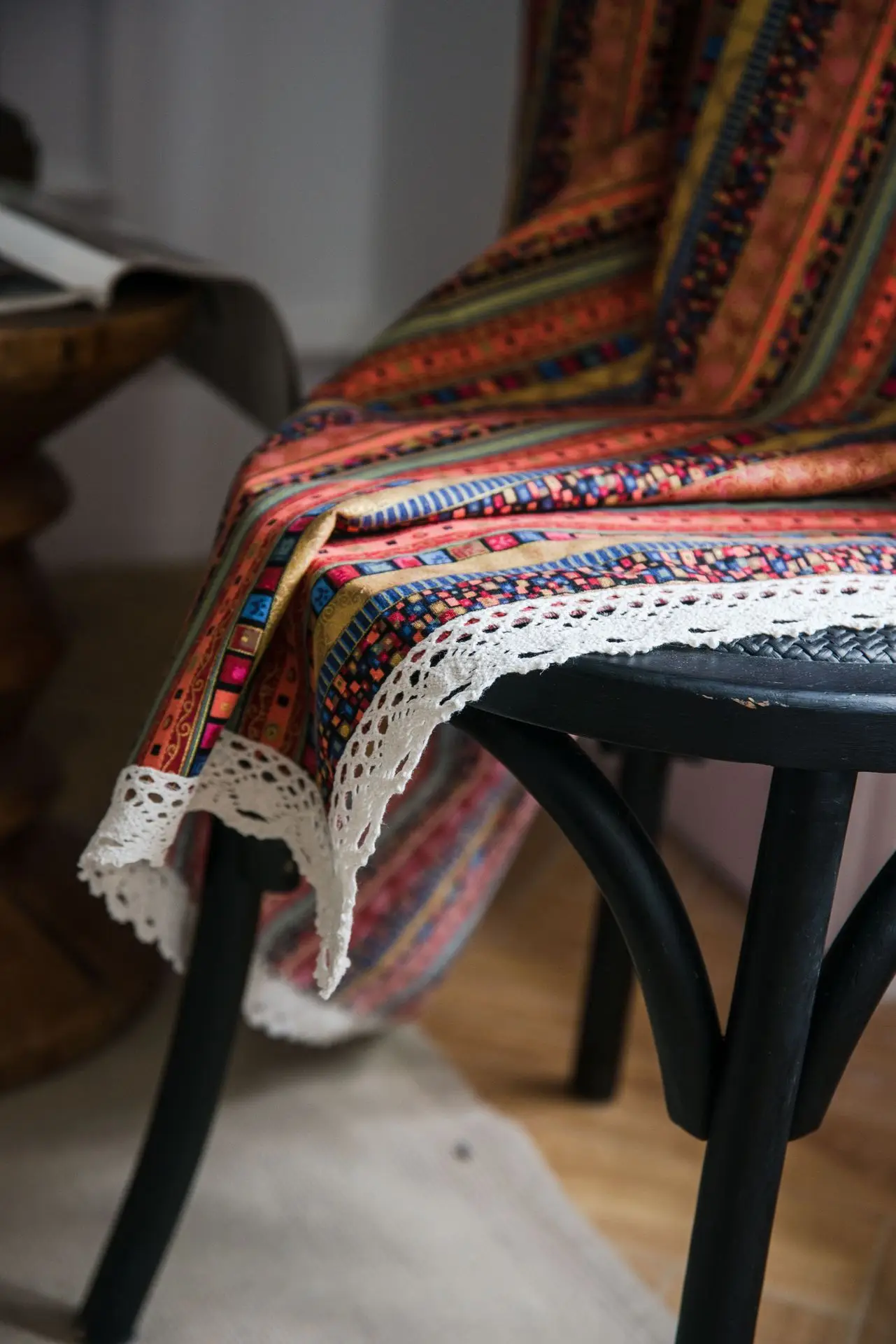 Богемные полосатые занавески с кружевными постельное белье из хлопк...