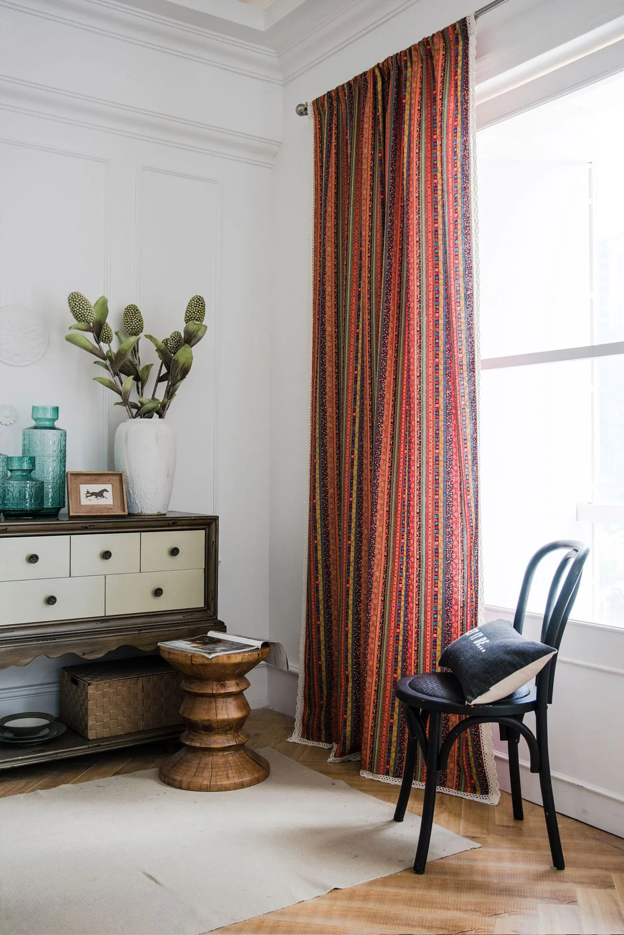 Занавески на окна в богемном стиле, полосатая оранжевая хлопковая л...