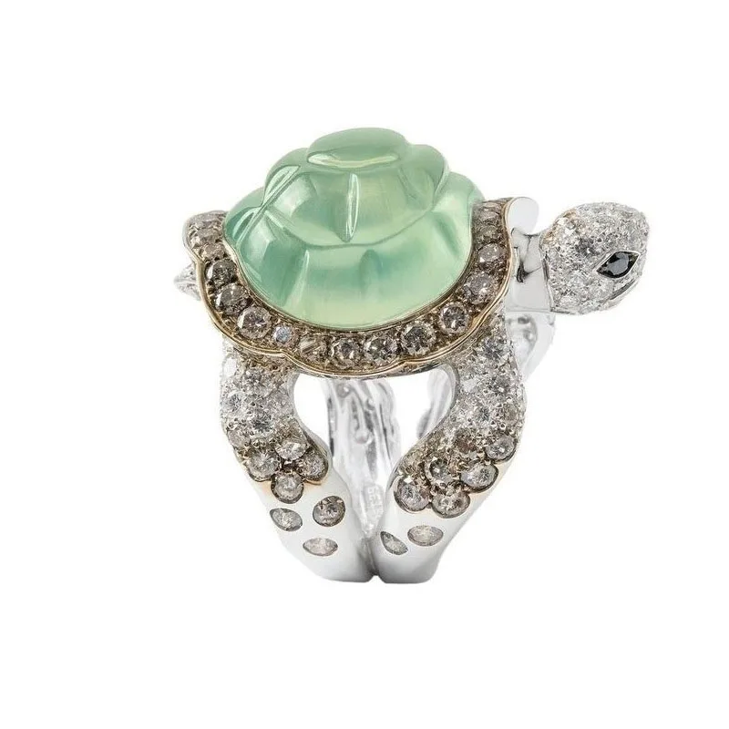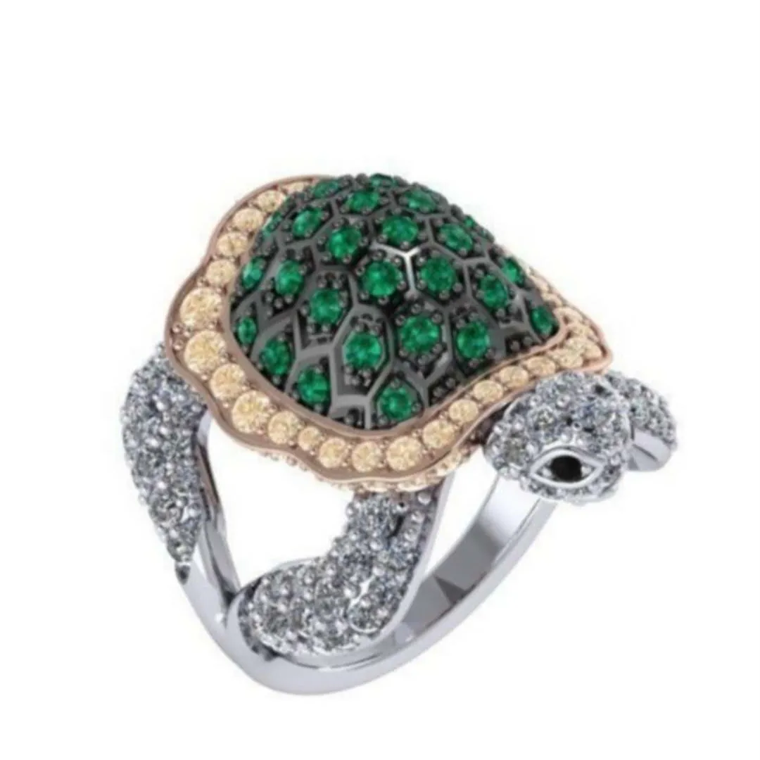 Кольцо женское, блестящее, в виде черепахи, стразы, кольца с украшением в виде черепахи