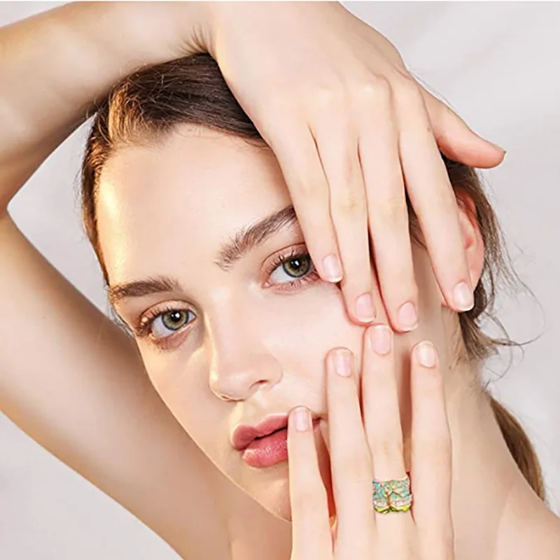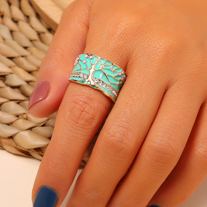 Женское Винтажное кольцо с опалом, золотистое, розовое, зеленое, эмалированное кольцо с широким кристаллом, 2021