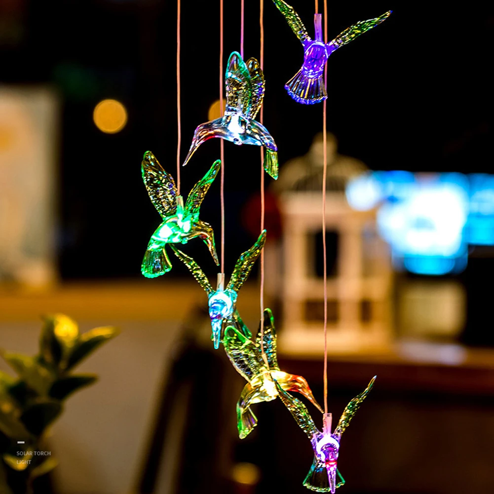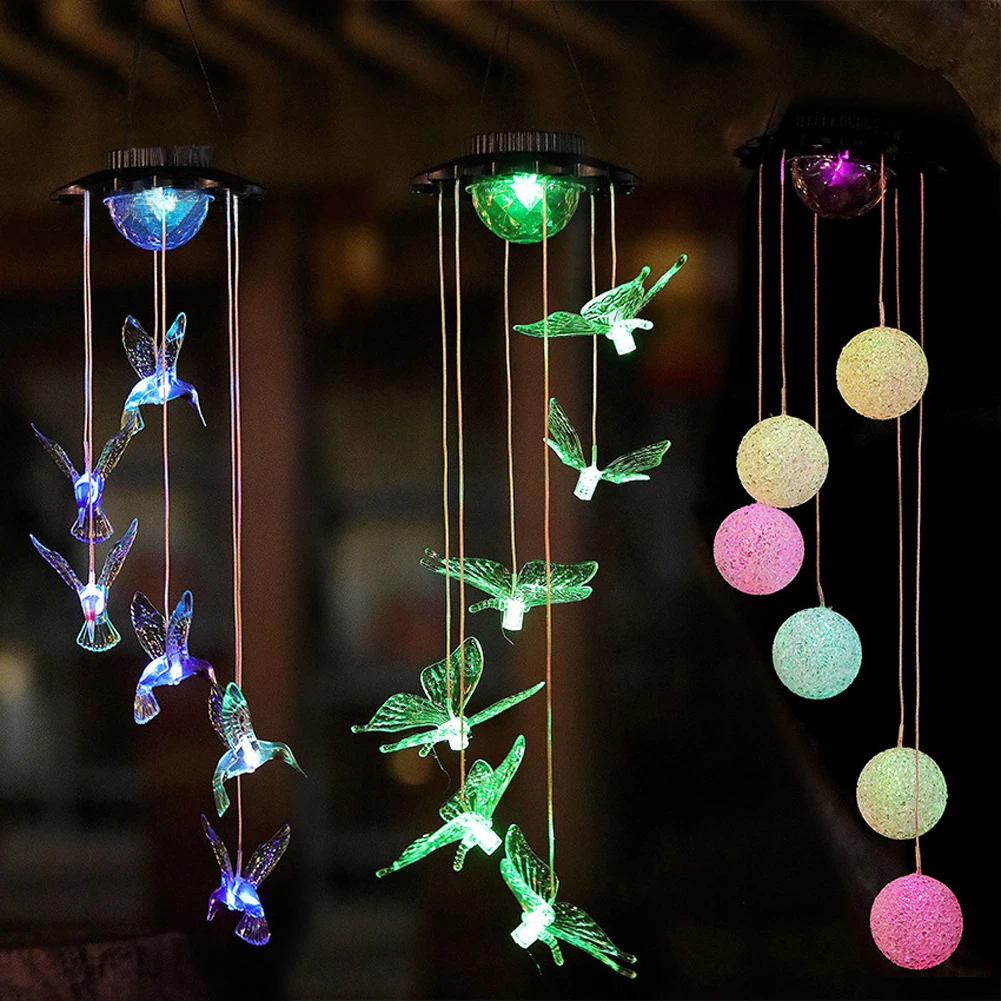 Меняющий цвет колокольчик ветра: свет загорается автоматически в ночное время/только в темное время, изменяя цвета, чередуя случайно красочные огни в ночное время. Добавляет элегантности вашему дому или саду на открытом воздухе.