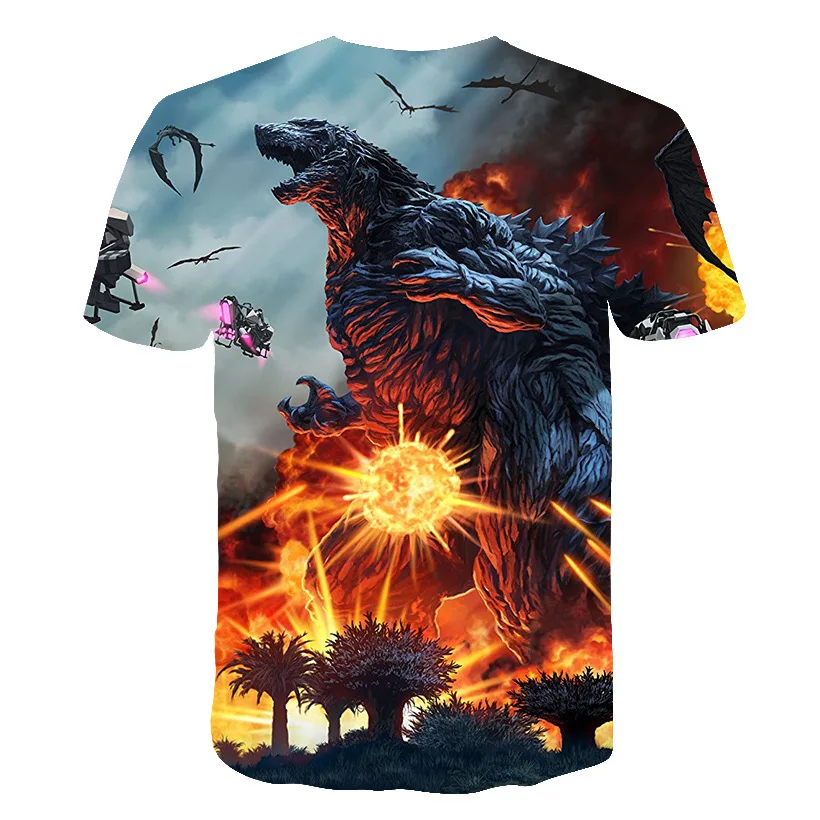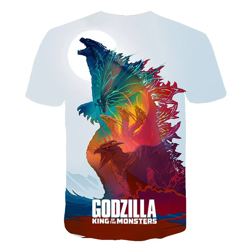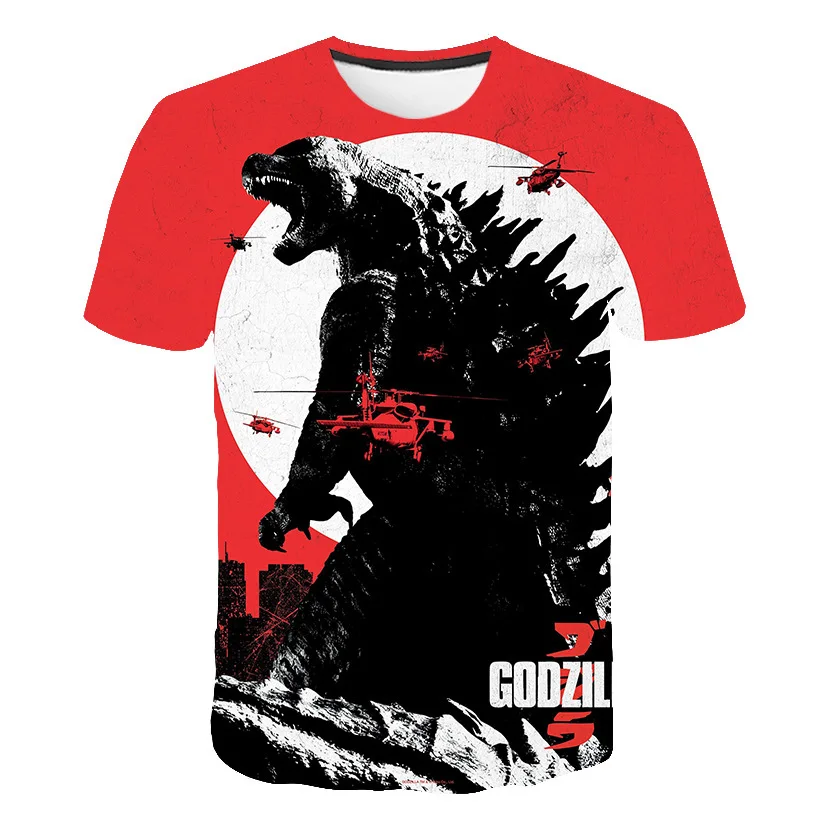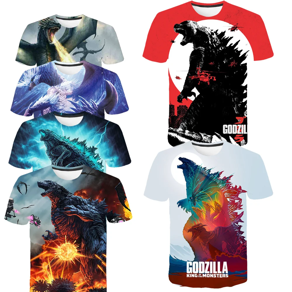 Дышащая и впитывающая Пот футболка Godzilla с короткими рукавами для мальчиков и девочек универсальные Топы мультяшная аниме детская одежда 2021 Новинка