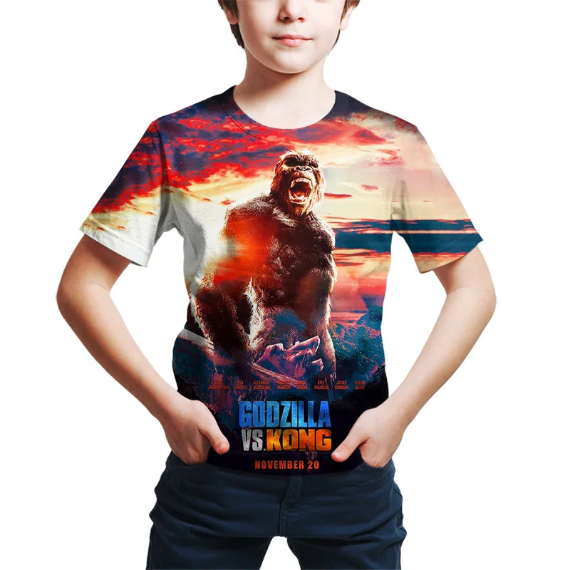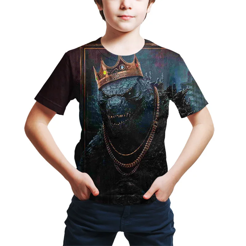 Дышащая и впитывающая Пот футболка Godzilla с коротким рукавом универсальные топы для мальчиков и девочек мультяшная аниме детская одежда Новинка 2021