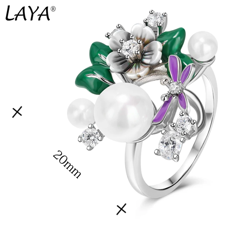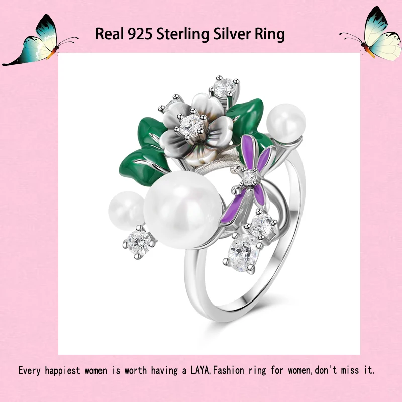 Лайя Стерлингового Серебра 925 Пробы Высокое Качество Циркон Натуральный Жемчуг Раковина Цветок Кольцо Для Женщин Мода Оригинальные Ювелирные Изделия 2022 Тренд