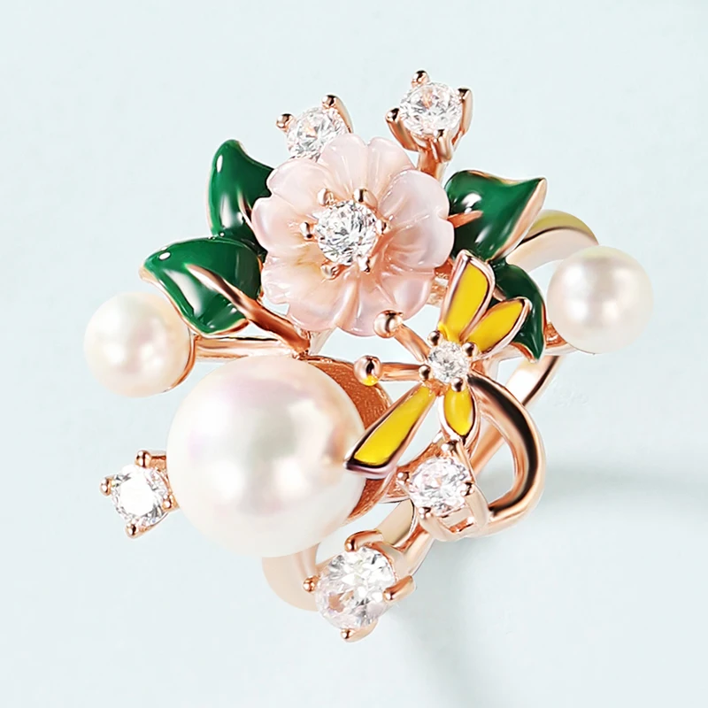 Высокое качество, циркон, ракушка, жемчуг, натуральный цветок, модное Ювелирное кольцо для женщин, 2021 тренд