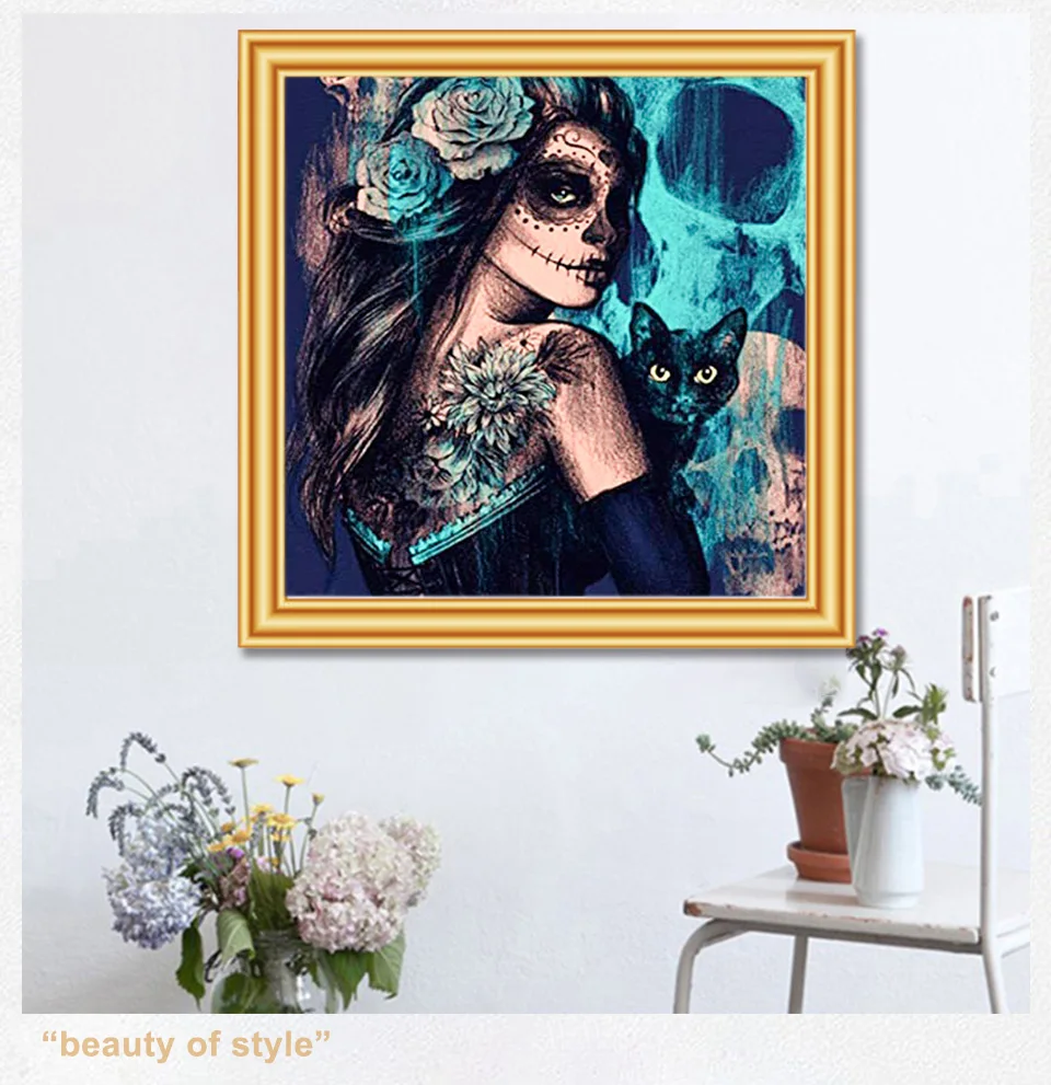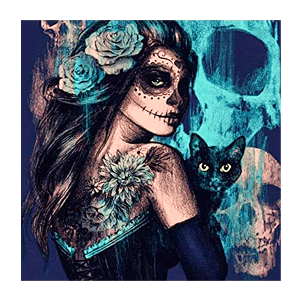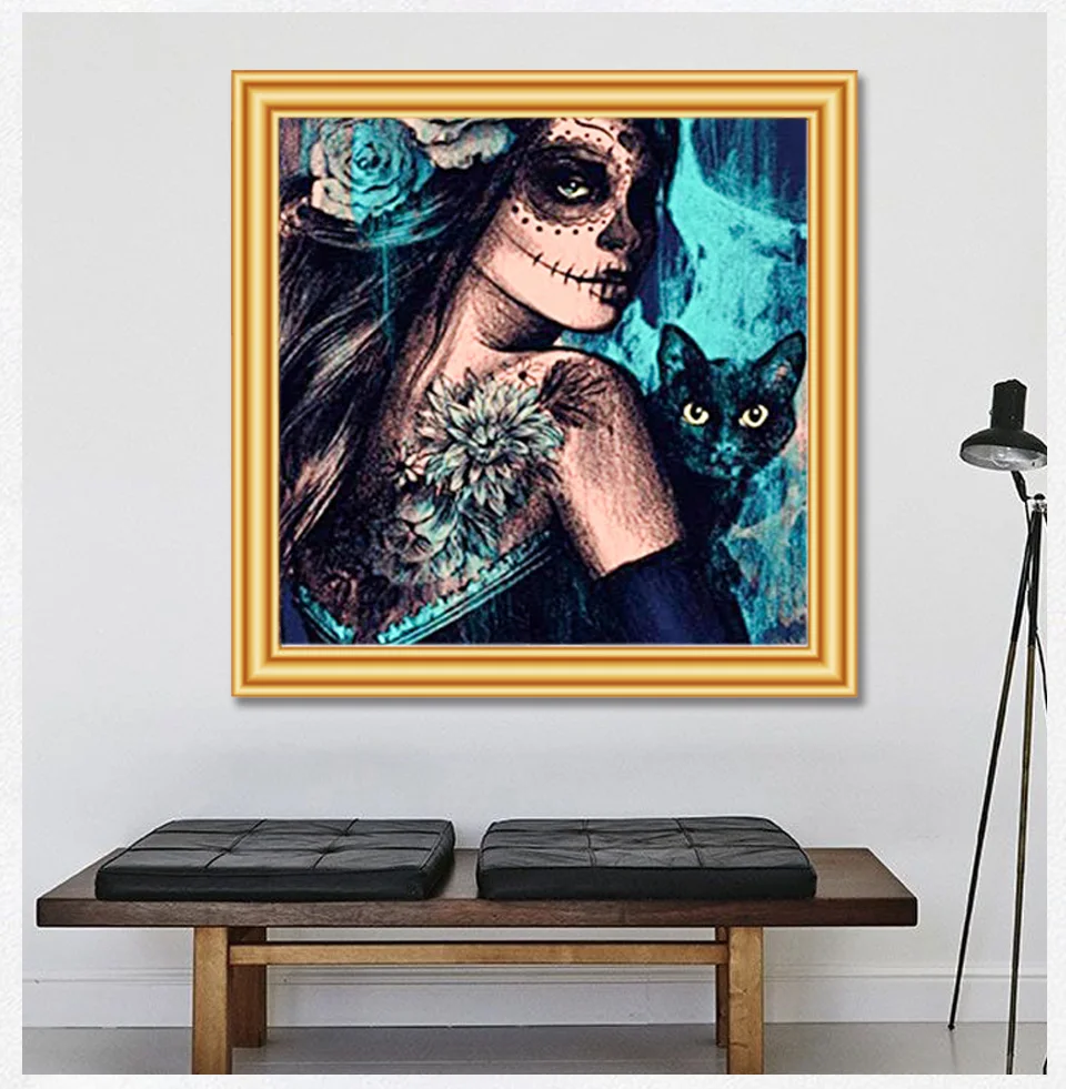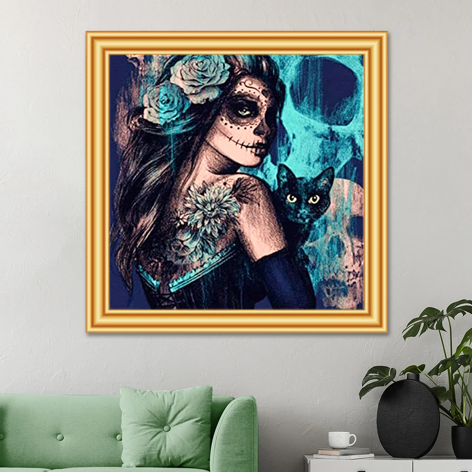 Набор для алмазной живописи для взрослых 5D с изображением девушки и кошки