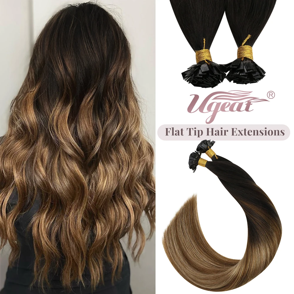 Ugeat наращивание волос с плоскими кончиками человеческие волосы предварительно скрепленные удлинители волос 14-24 дюймов кератиновые плоские человеческие волосы балаяж цветные волосы 1 г1 с