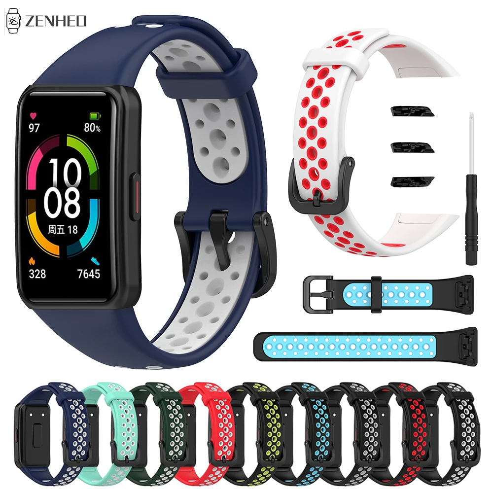 Силиконовый ремешок на запястье для Huawei Honor Band 6, смарт-браслет, ремень для замены, двойной цвет, часы для Huawei Honor Band 6, браслет