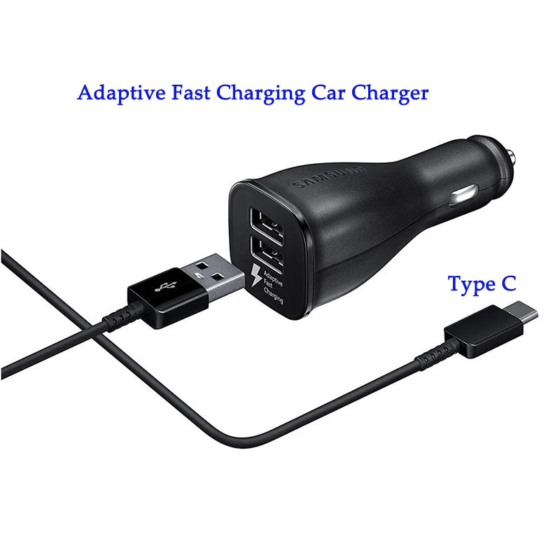 Автомобильное зарядное устройство Samsung 15 Вт с двумя USB-портами, автомобильное зарядное устройство для телефона, адаптер AFC с кабелем типа C для Galaxy S20 S10 S8 S9 Note 10 Plus A90