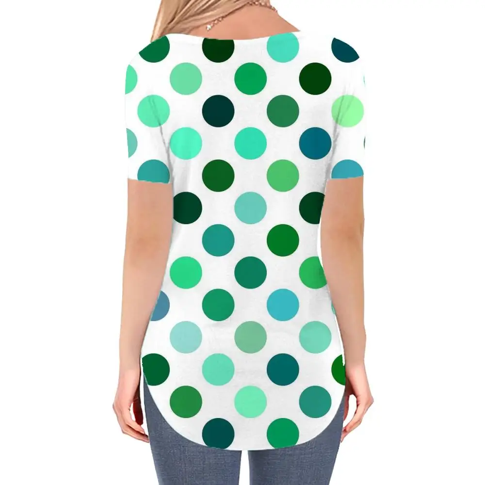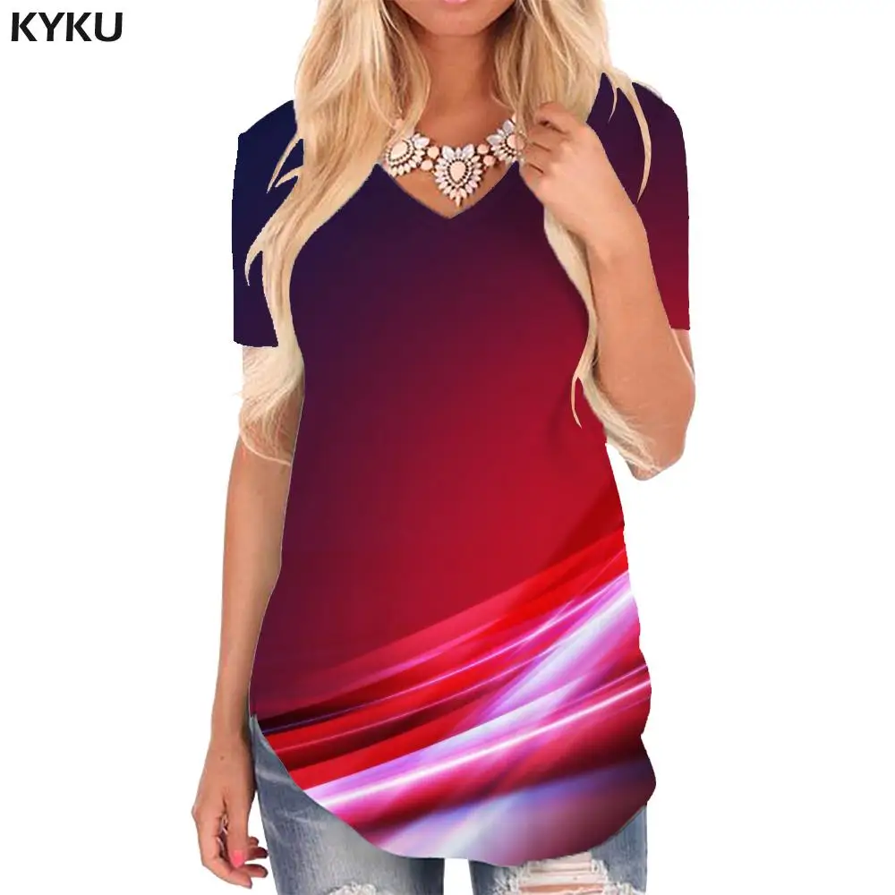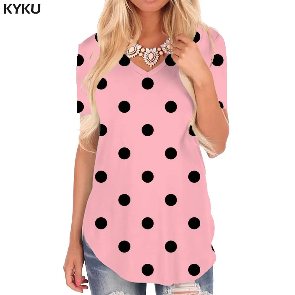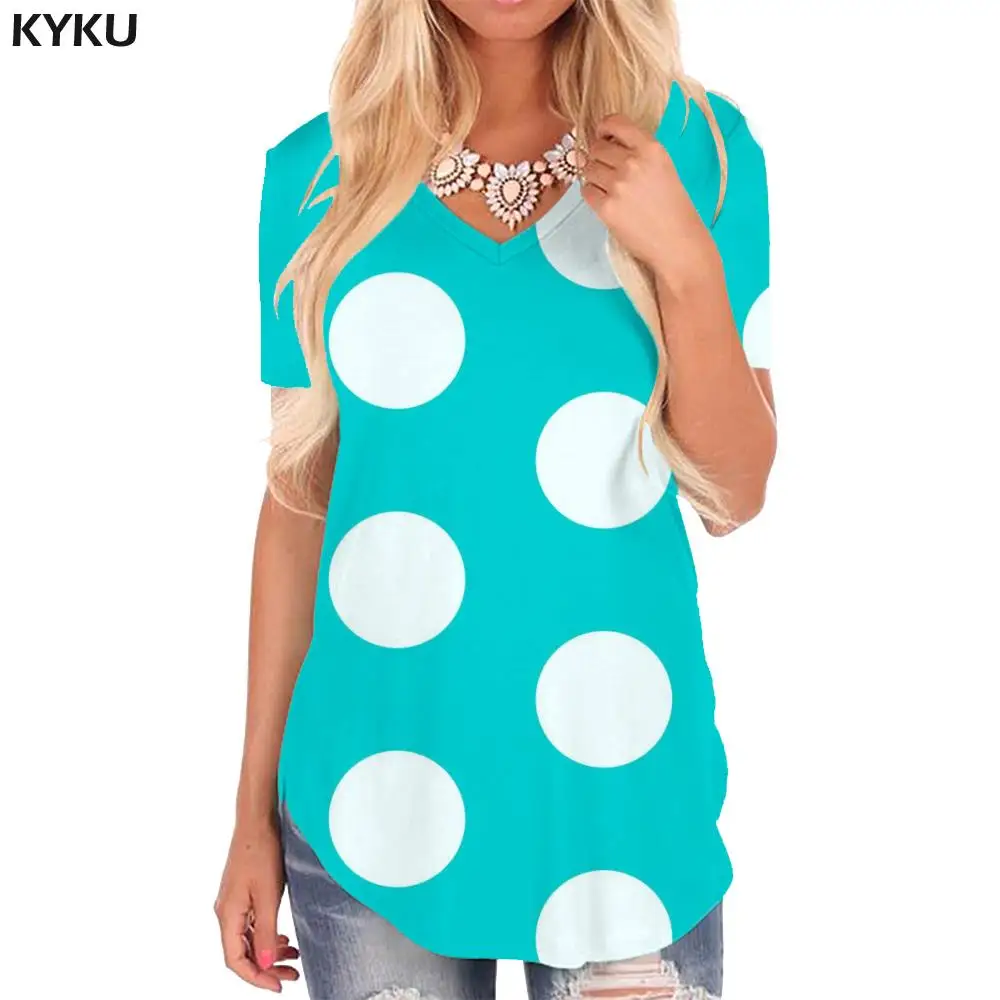 Женская футболка в горошек KYKU, разноцветная свободная футболка с V-образным вырезом и 3D-принтом, лето