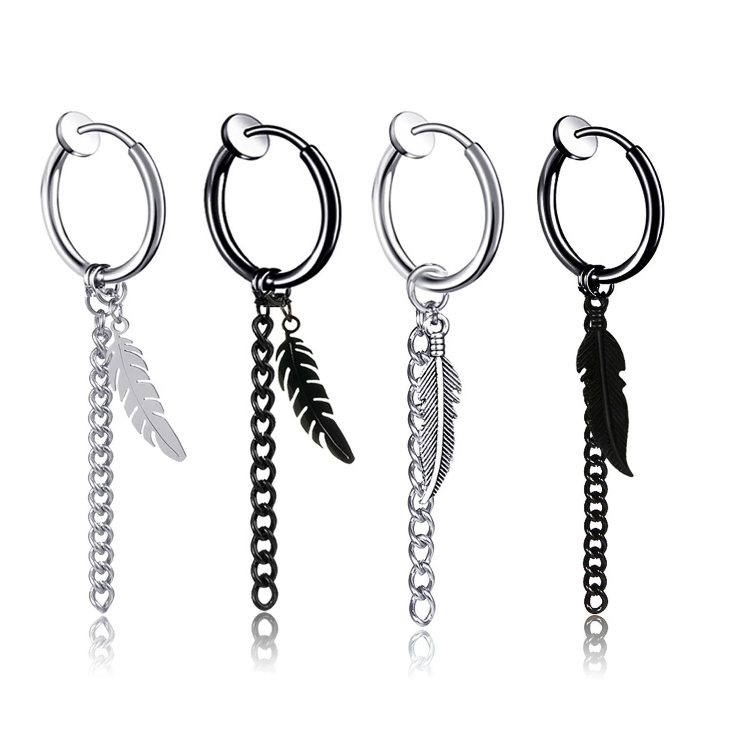 Виниловые серьги унисекс, серьги-гвоздики без пирсинга с кожаными перьями, Подвесные серьги-подвески с петлями для мужчин, женщин, подростков
