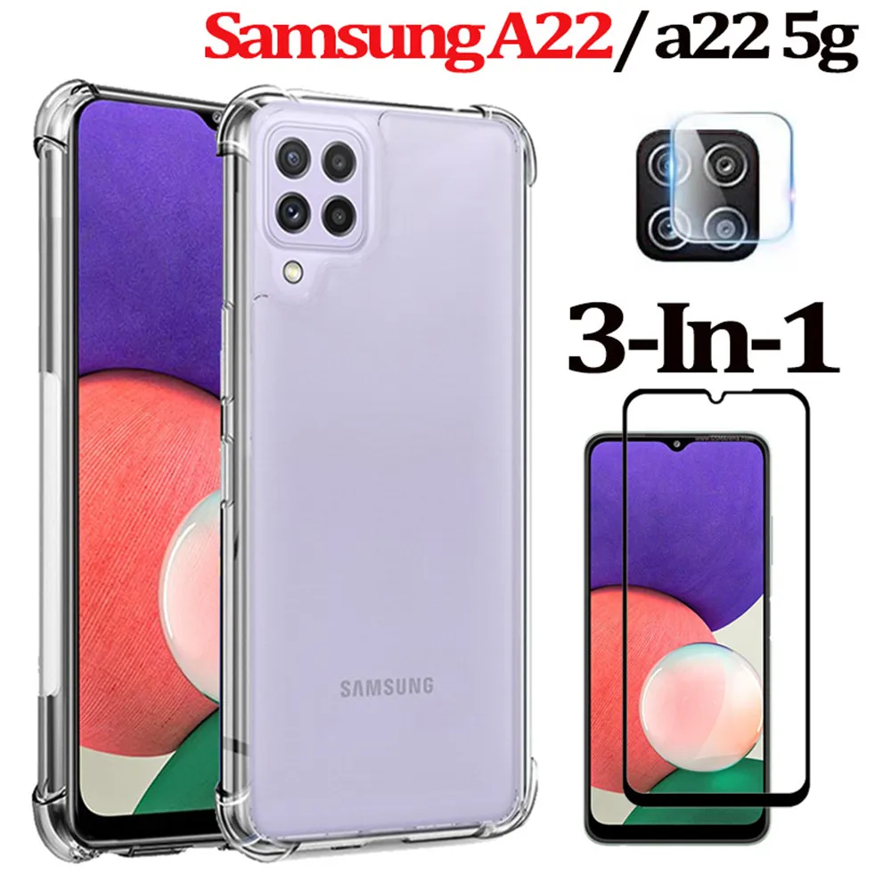 самсунг a22 Силиконовые чехлы для Samsung Galaxy A22 5g чехол + стекло Samsung A22 SamsungA22 glass для Samsung a22, Противоударная задняя крышка для Galaxy A22 A 22 чехол для телефона самсунг галактика a22 5G