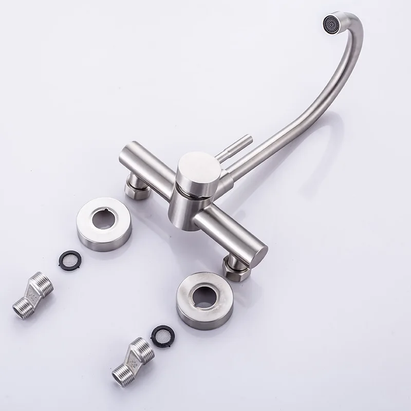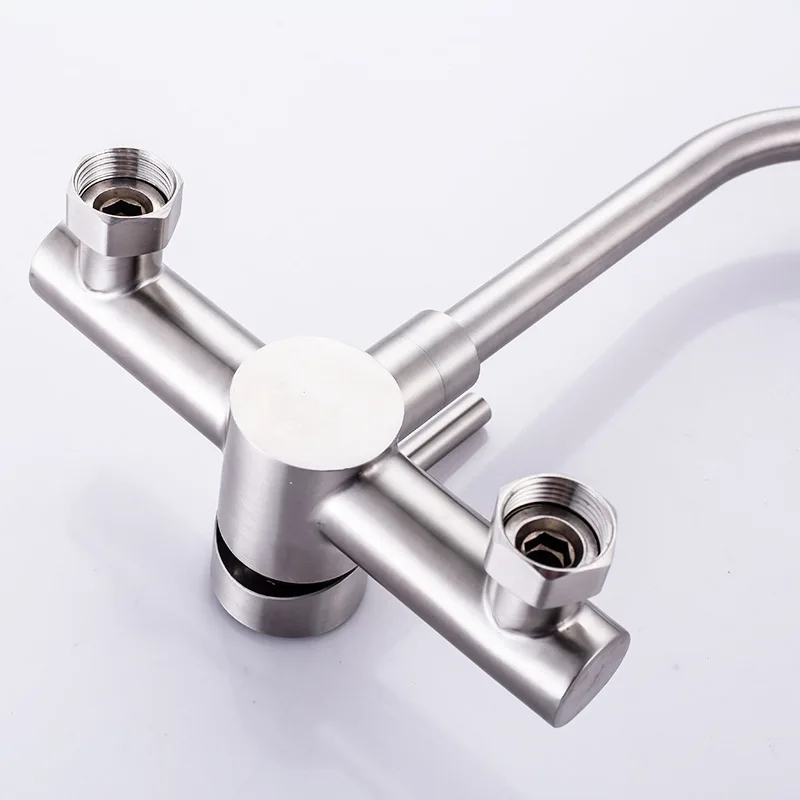Кухонный настенный смеситель из нержавеющей стали 304, вращающийся кран для горячей и холодной раковины с двойным отверстием