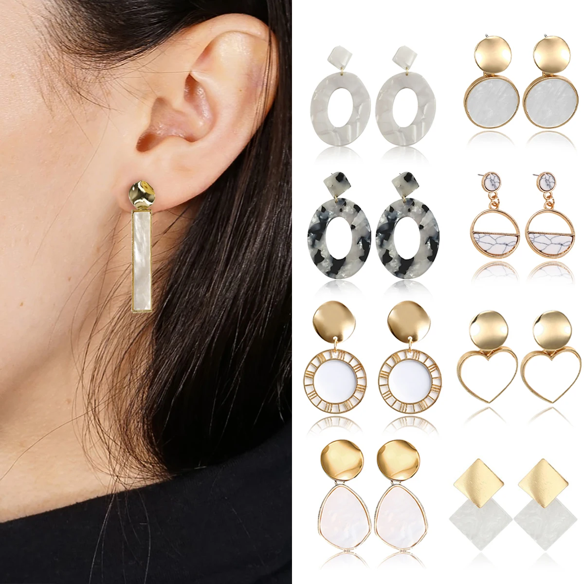 1 пара корейские Эффектные серьги для женщин белые Милые Акриловые геометрические Висячие золотые серьги Модные ювелирные изделия
