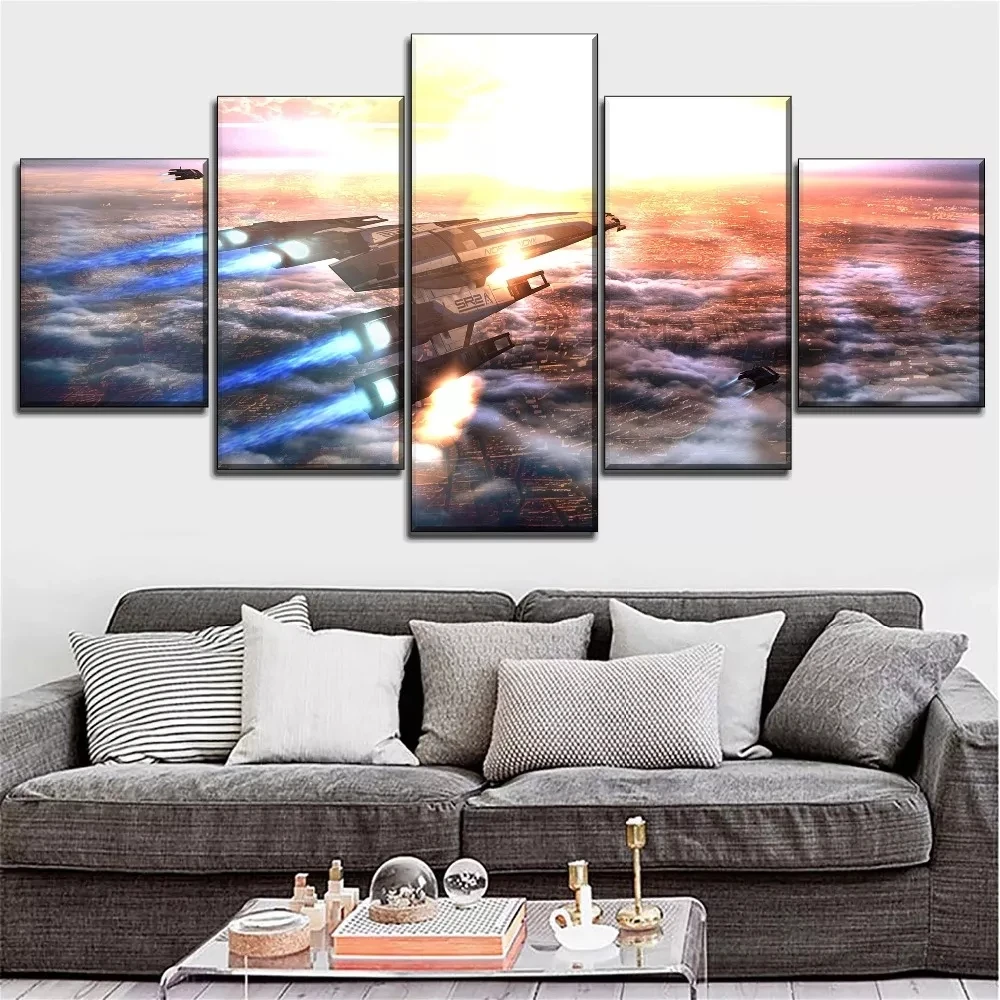Первоклассное настенное искусство, картины на холсте с принтом, модульный стиль, 5 шт., игровая звезда Mass Effect Нормандия