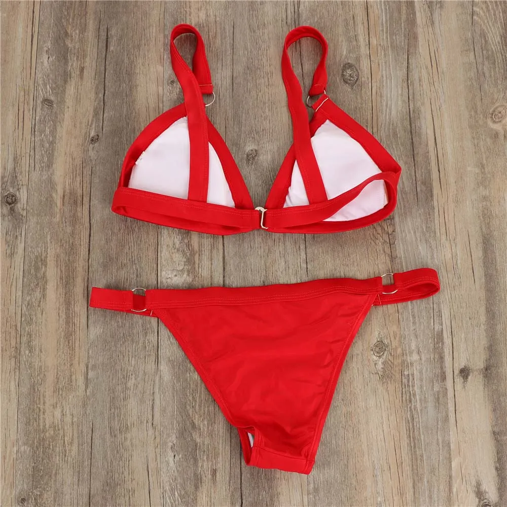 Paotang 2021 бикини в европейском и американском стиле, новые сексуальные модные однотонные маленькие круглые железные кольца, женский купальник, костюмы из двух частей