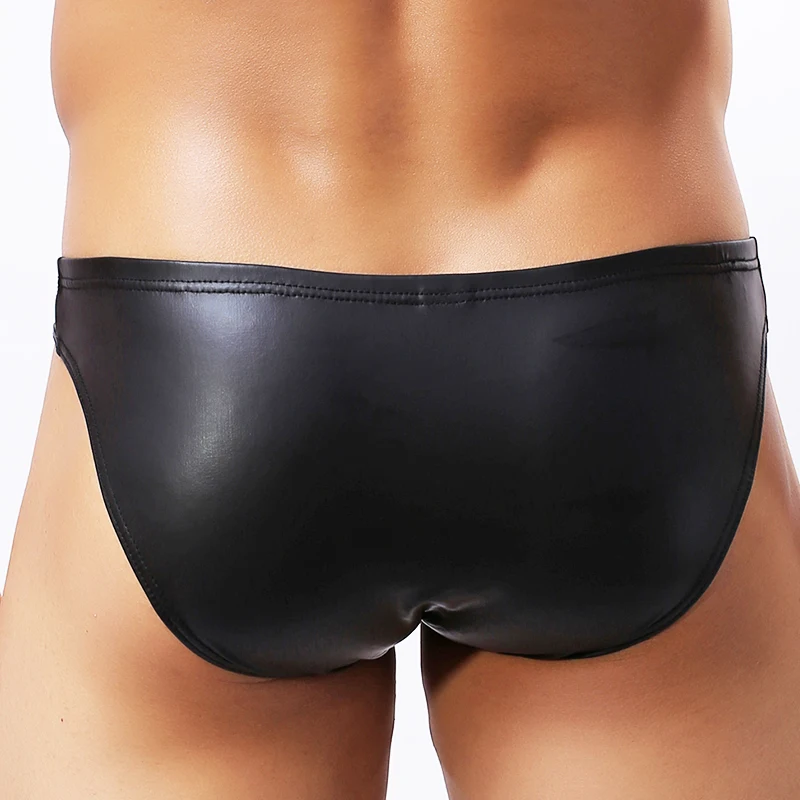 Мужские трусы брифы из искусственной кожи, с низкой талией, с мешочком, сексуальное нижнее белье, гей-трусы