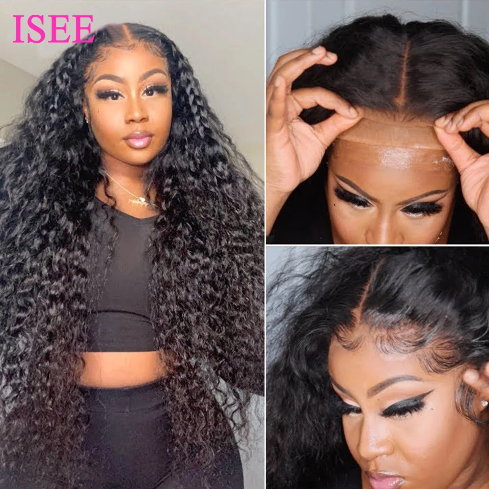 Монгольские волнистые волосы ISEE, парик на сетке спереди, парики из человеческих волос, парики на сетке 4x4 Для Женщин, парики на сетке 13x1, парики на сетке с водной волной