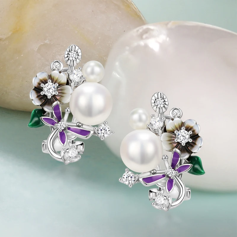 LAYA Shell Жемчужные Серьги Для женщин Из Чистого Стерлингового Сер...