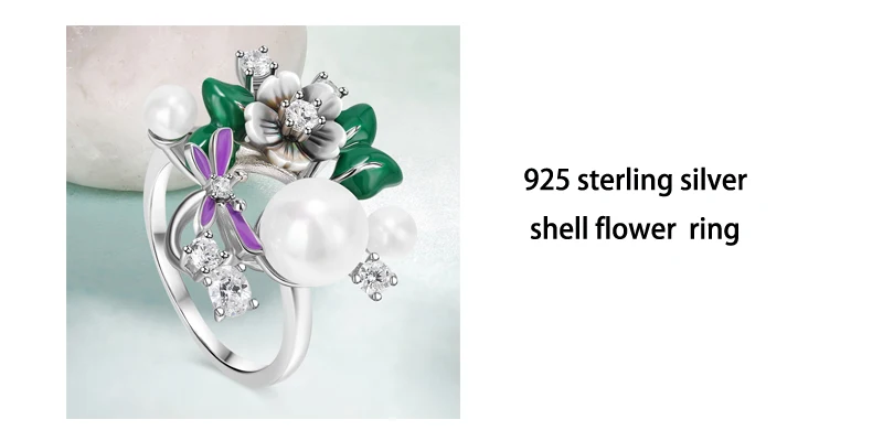 Кольцо женское из серебра 925 пробы, с натуральными ракушками