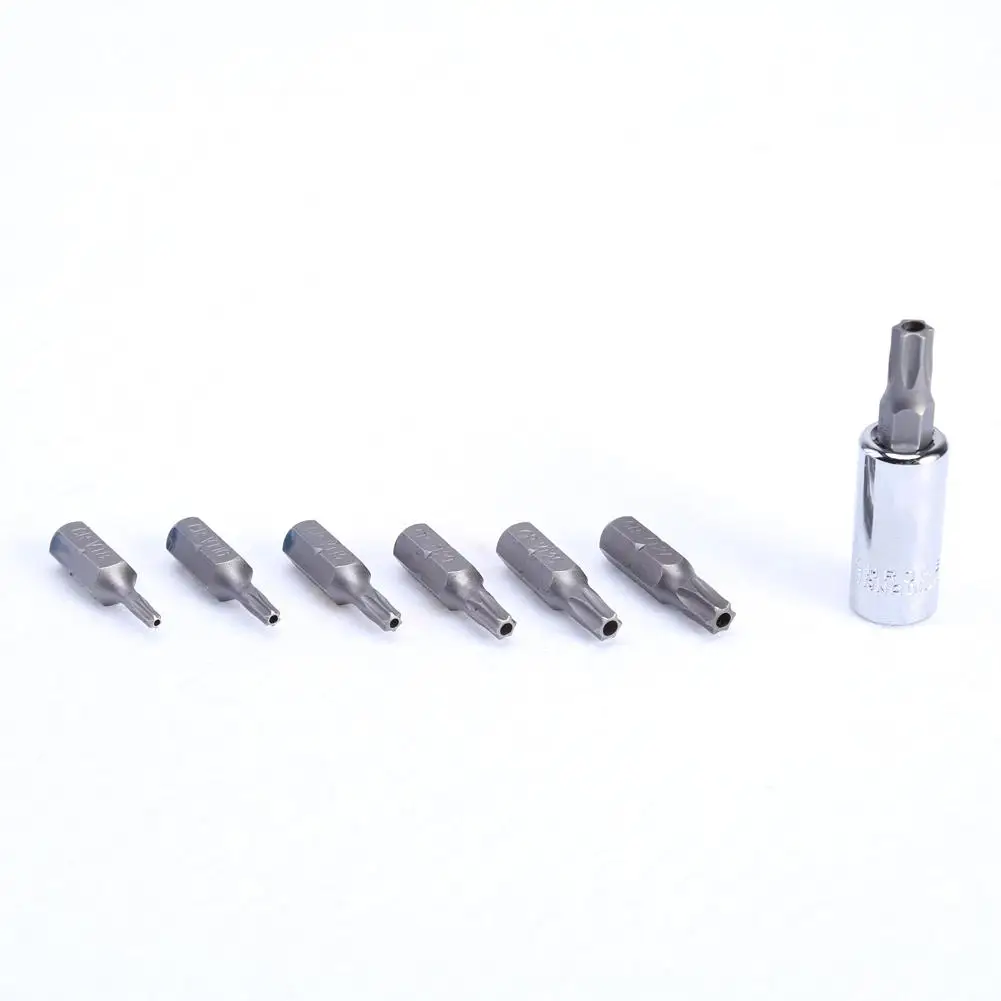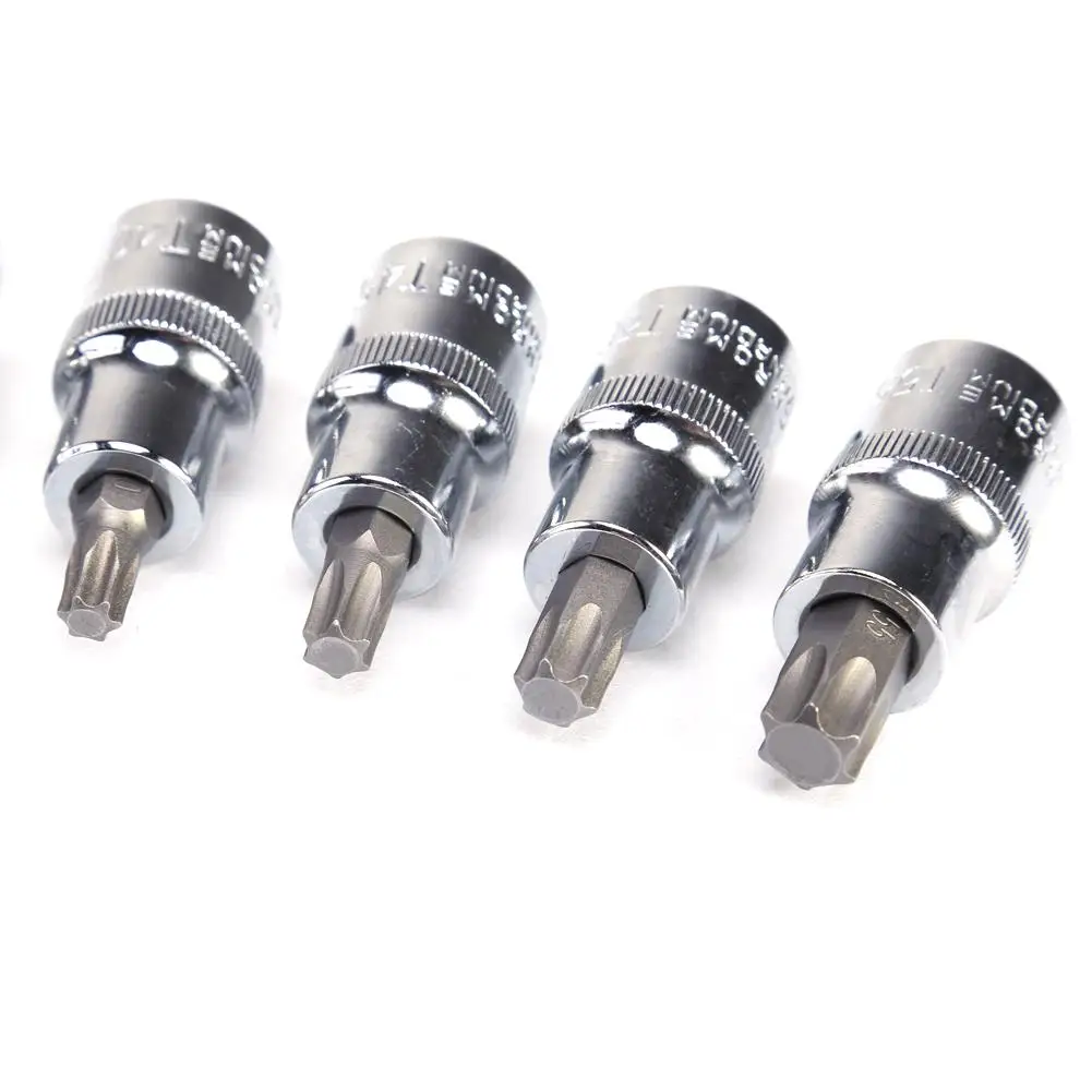 Технические характеристики 1/4 "Привод женский torx розетки e4 / e5 / e6 / e7 и e8 3/8 "Привод женский torx розетки e10 / e12 / e14 / e16 / e18 и e20 Штыревые торксы 1/4 "t8 / t10 / t15 / t20 / t25 / t27 и t30 3/8 "Привод торкса гнезда t10 / t15 / t20 / t25 и t27 1/2 "Привод торкса гнезда t30 / t40 / t45 / t50 и t55 Держатель Бит для привода 1/4"