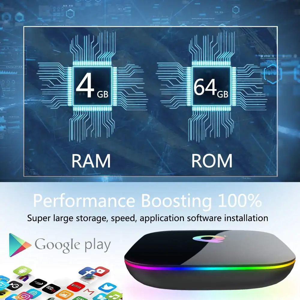 Android 9,0 Q Plus Smart TV Box 4 Гб ОЗУ 32 ГБ/64 Гб ПЗУ четырехъядерный H.265 USB3.0 2,4G WiFi телеприставка 4K ТВ приставка IP TV медиаплеер