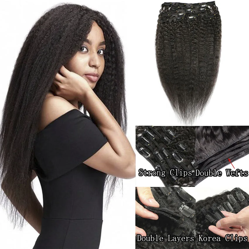 Монгольские человеческие волосы, вьющиеся, прямые, на заколке, 8 шт. и 120 гкомпл., яки, прямые, естественного цвета, для женщин