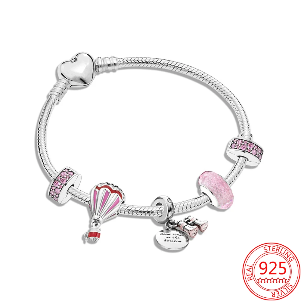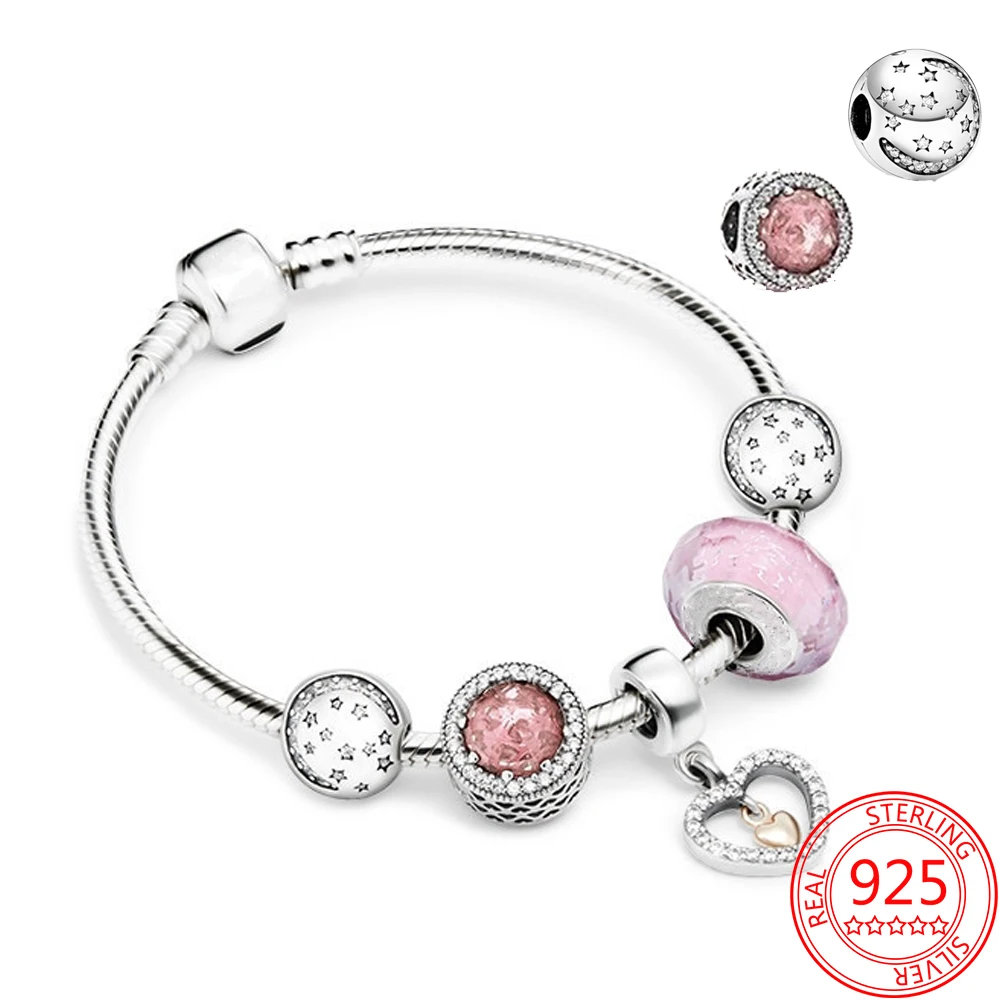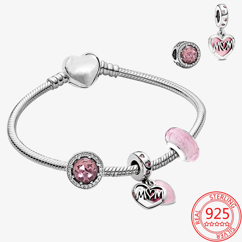 Романтический Набор браслетов из стерлингового серебра 925 пробы с сердцем и порошком любовью муранским сердцем для матери любовью змея модные брендовые ювелирные изделия сделай сам