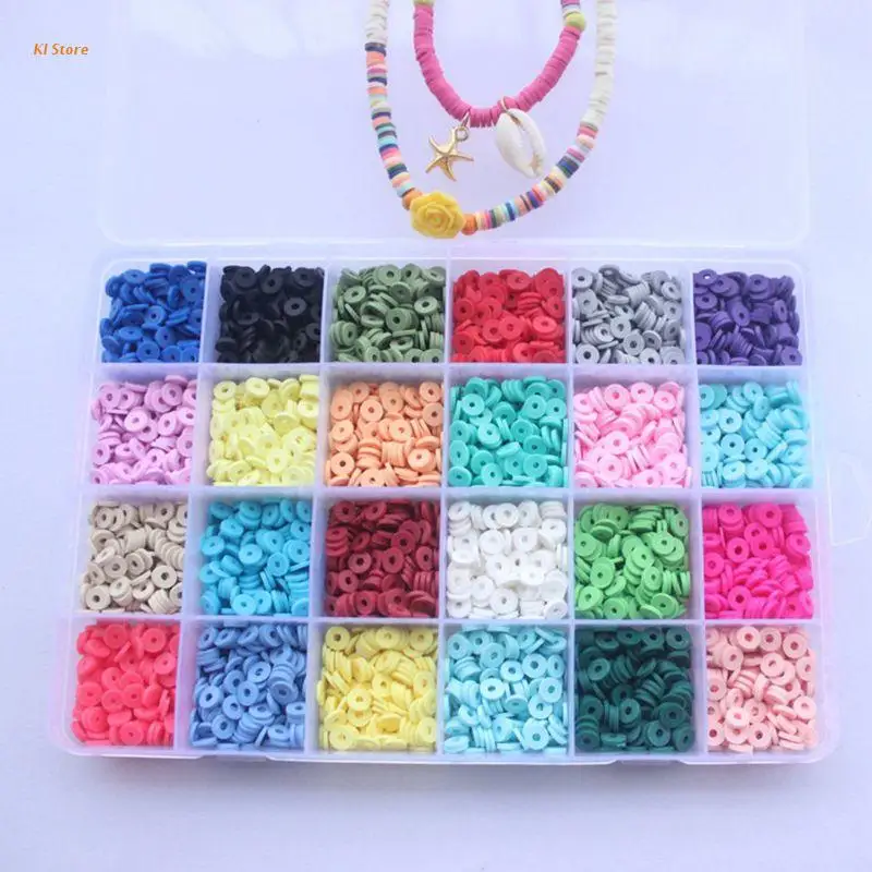 Плоские круглые диски из полимерной глины, 4800 шт., 24 цвета, 6 мм, бусины-разделители россыпью для изготовления ювелирных изделий своими руками, богемный Браслет, Ожерелье