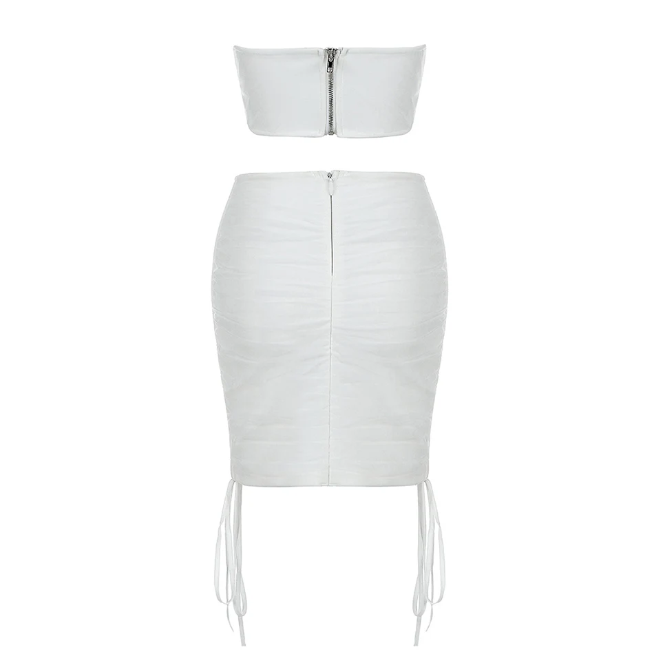 Женский топ на тонких бретельках и Сексуальная мини-юбка с рюшами, летний костюм из двух предметов