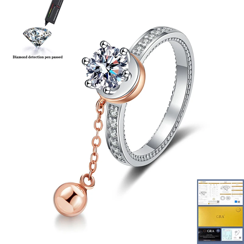 Новинка, 2 цвета, бусины для свадьбы, юбилея, искусственное серебро, D VVS 1 карат, мусанит, кольцо, подарок для женщины
