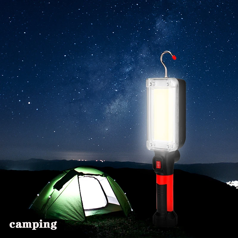 Светодиодный рабочий светильник COB с аккумулятором USB18650, портативный фонарь с магнитным крючком, светильник для кемпинга, ремонта, рабочего освещения