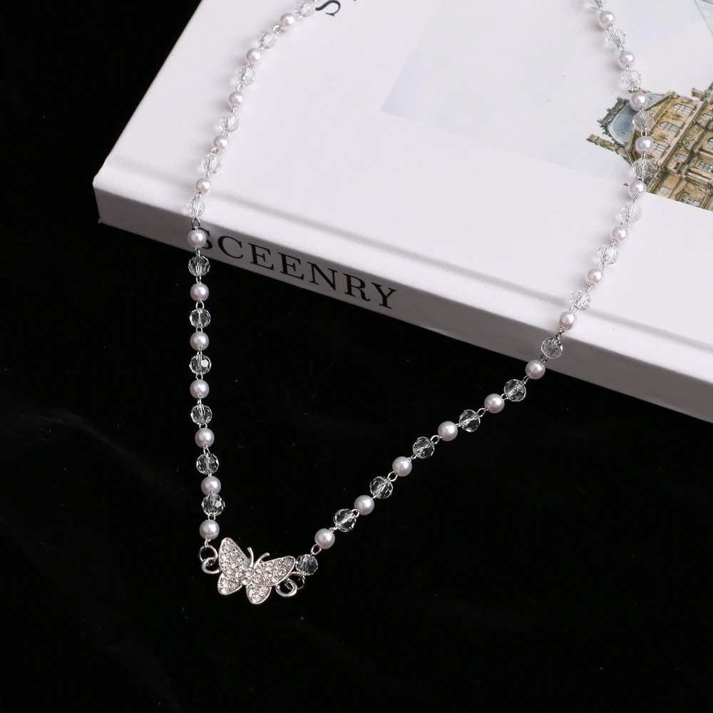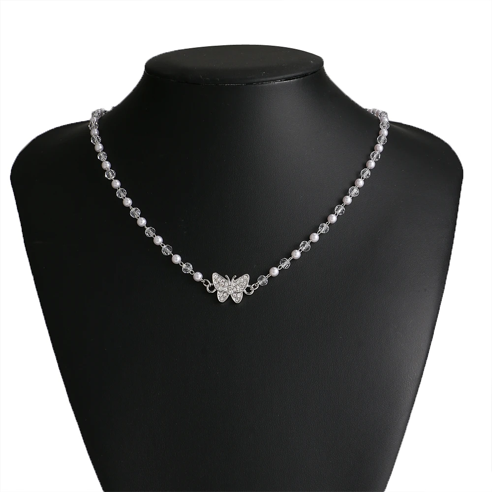VKME Kpop модное ожерелье из бисера для женщин бабочка кристалл кулон Очаровательное ожерелье-Чокер ожерелья корейские ювелирные изделия аксессуары