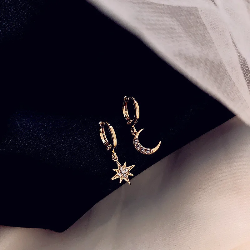 Серьги в Корейском стиле с Луной и звездой, асимметричные серьги с ...