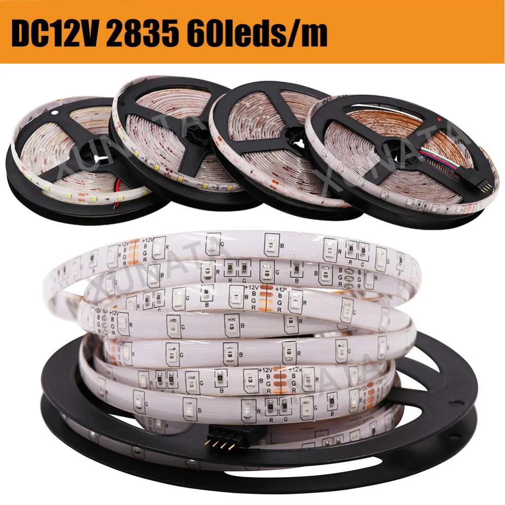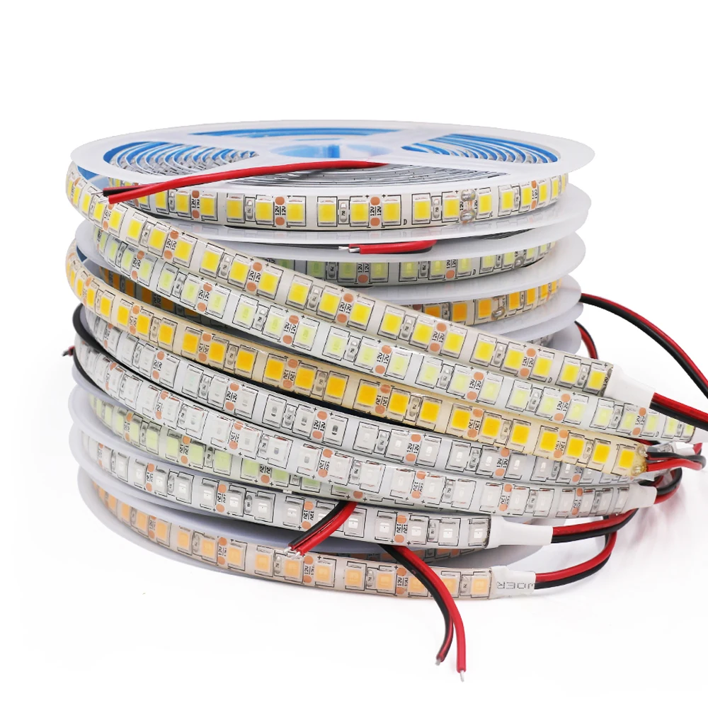 Светодиодная лента, 5 м, 12 В постоянного тока, SMD 5050 5054 2835 60 120 240 светодиодовм, гибкая лента теплого и холодного натурального белого света, светильник та для украшения дома