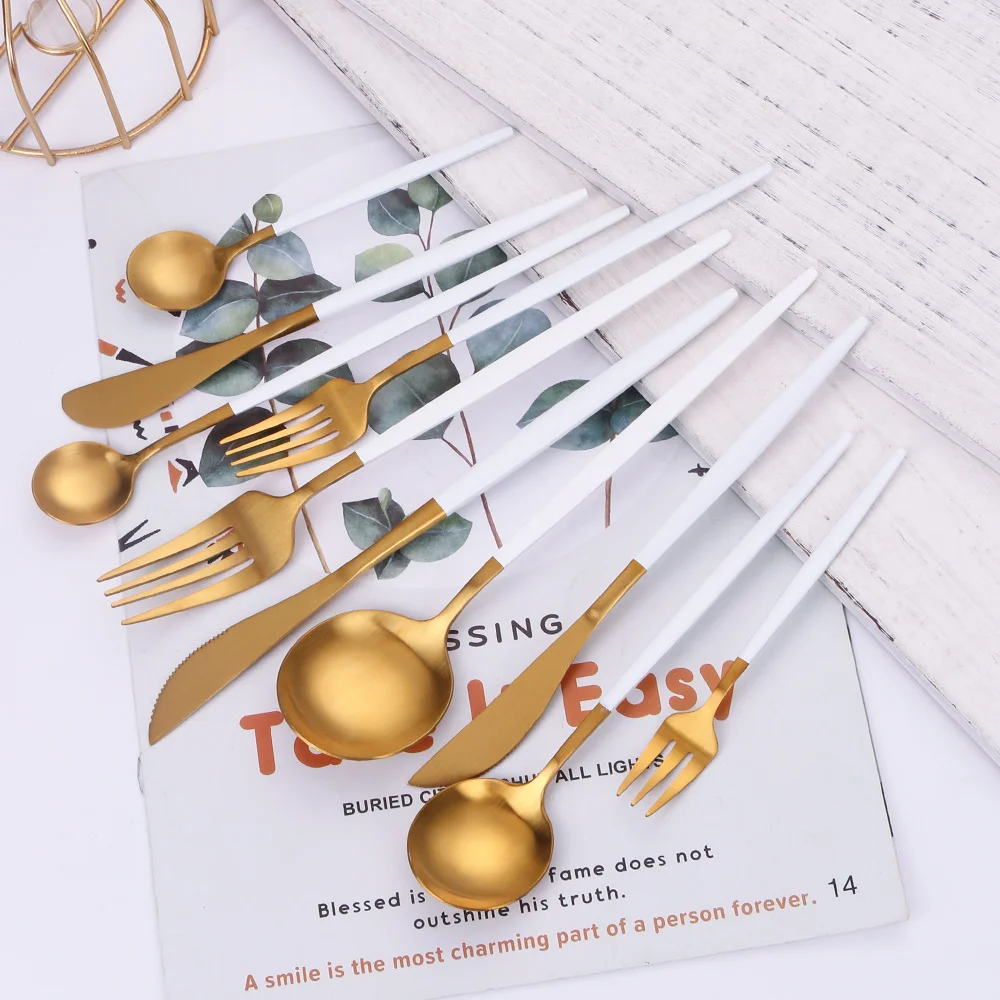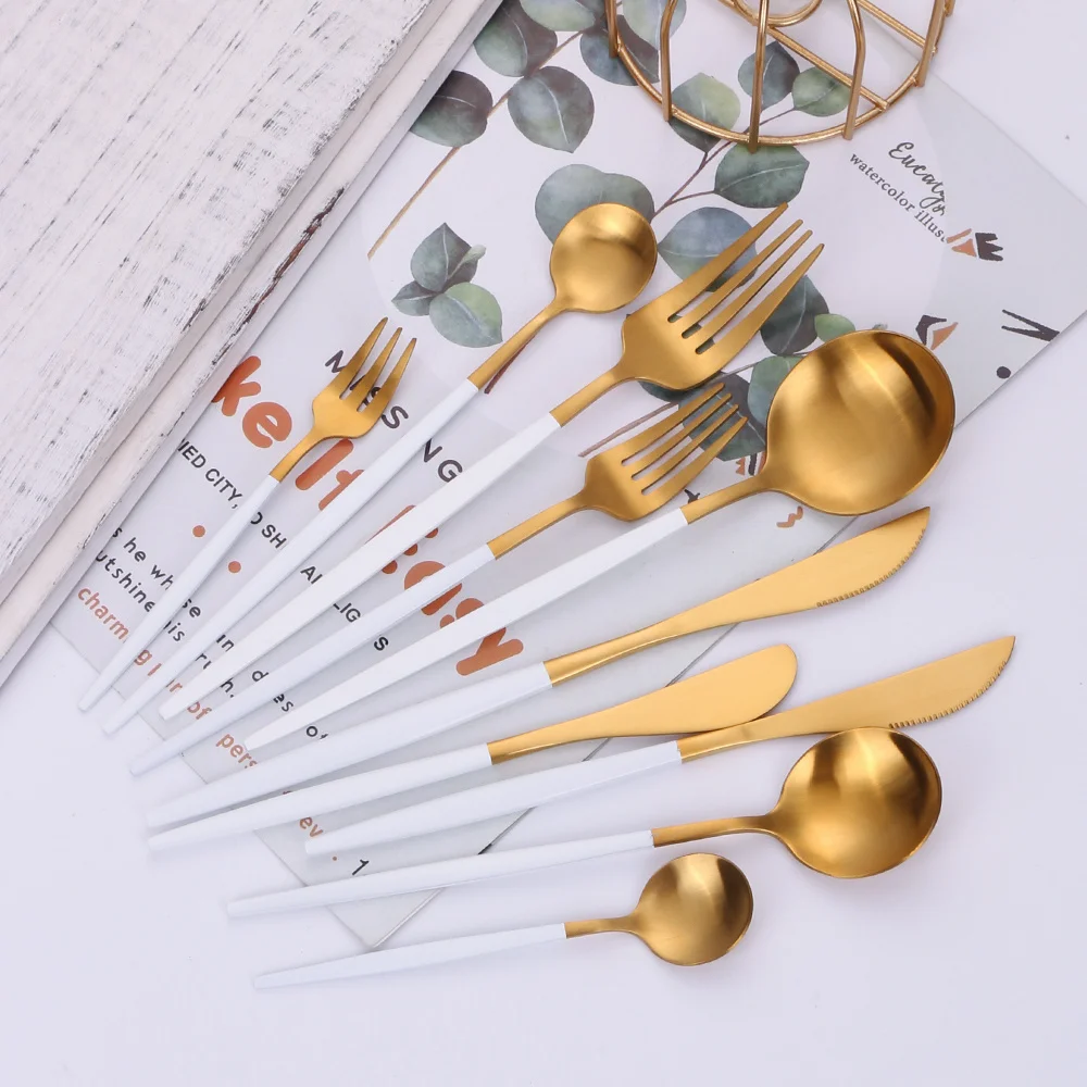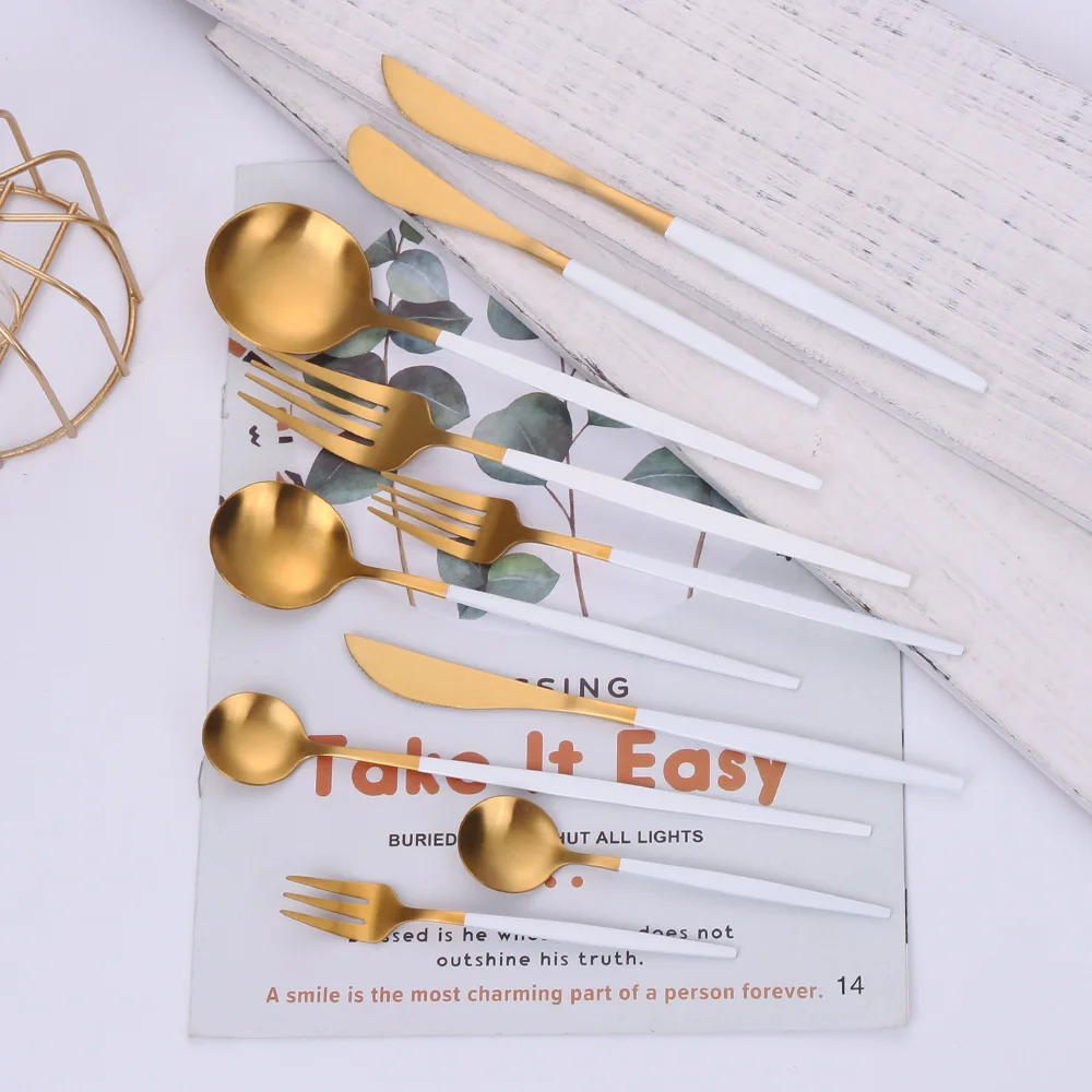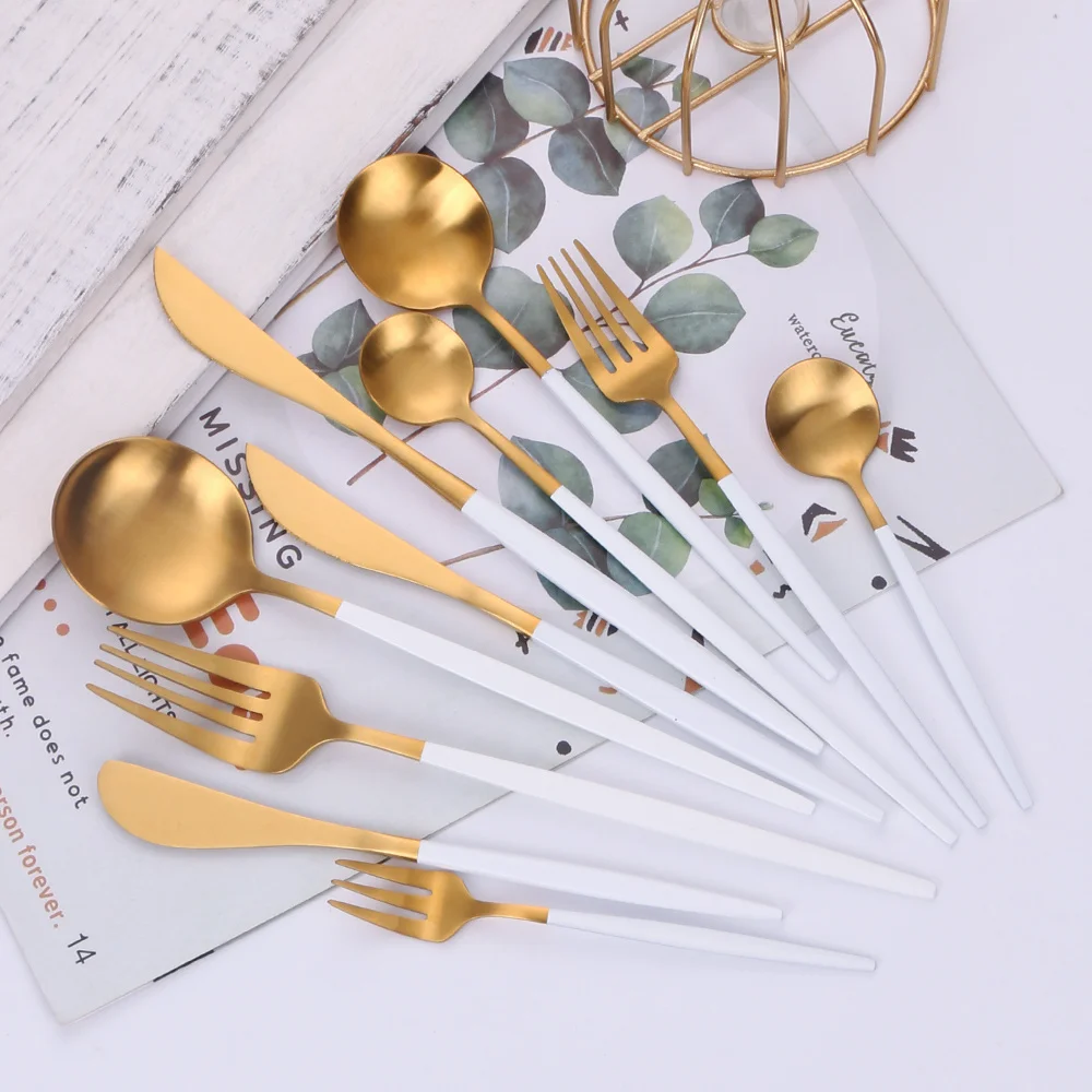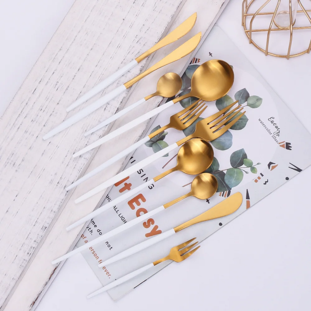 Набор столовых приборов из нержавеющей стали, белого и золотого цвета, 1 шт., набор ножей, вилок, ложек, столовых приборов, набор серебряных изделий