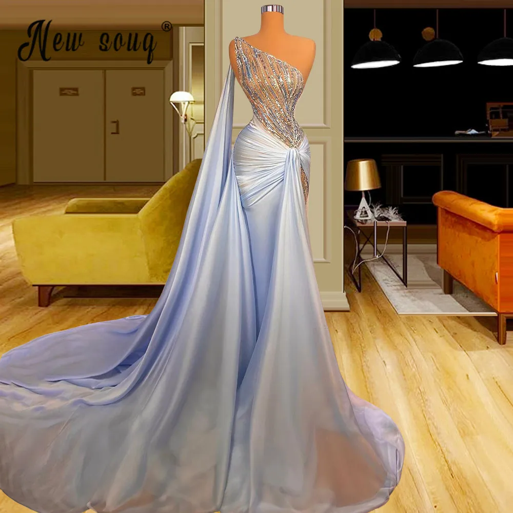 Женское вечернее платье на одно плечо, фиолетовое длинное платье с бусинами, исламское турецкое платье русалки для выпускного вечера, размера плюс