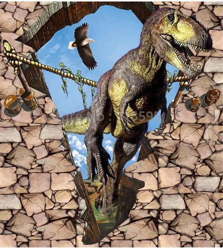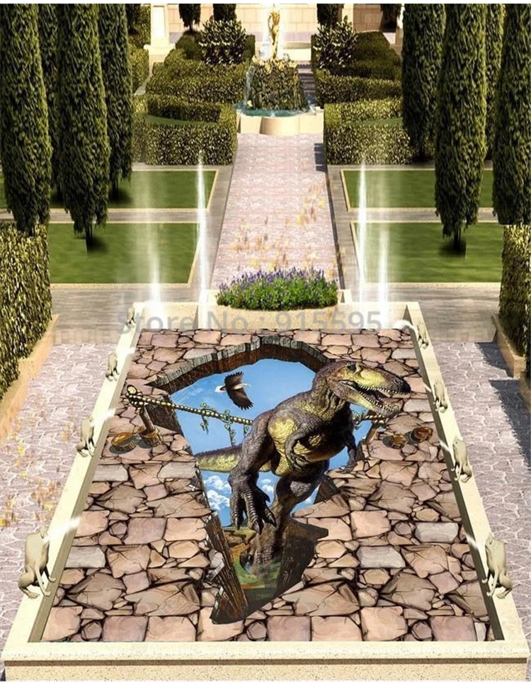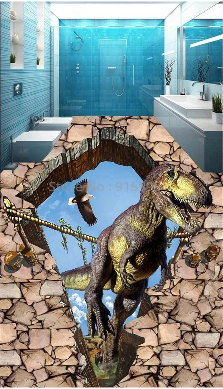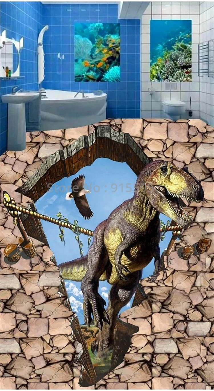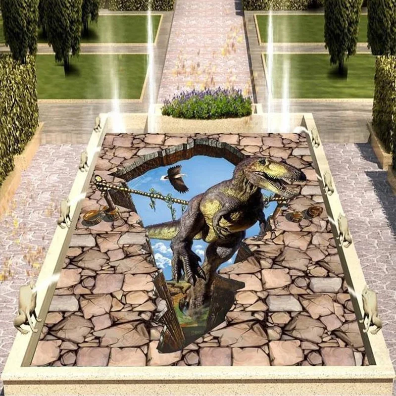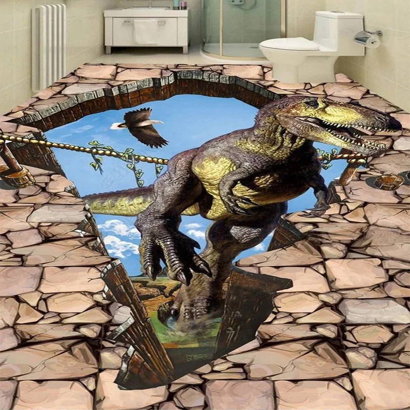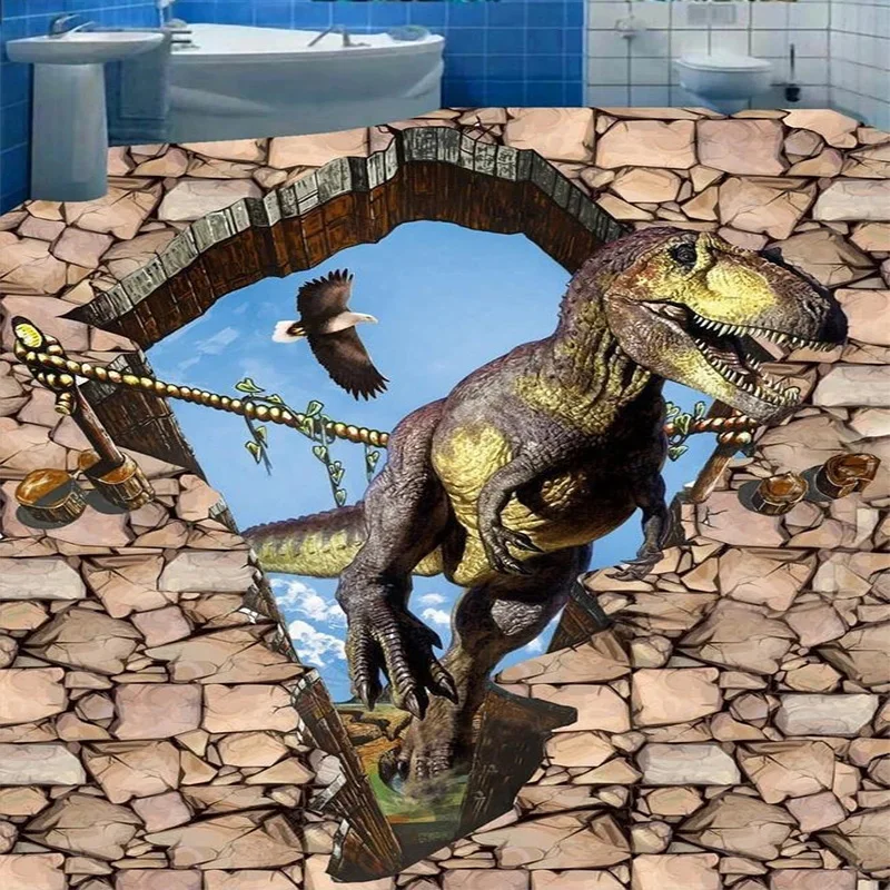 ПВХ самоклеящиеся водонепроницаемые наклейки на стену, 3D динозавр, напольные фрески, виниловые напольные покрытия для ванной, уличная живопись, 3D художественные наклейки