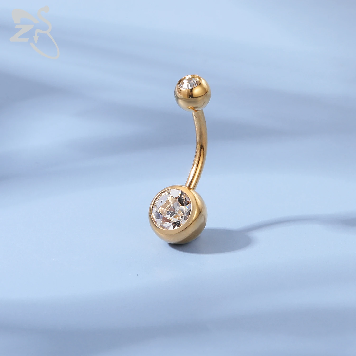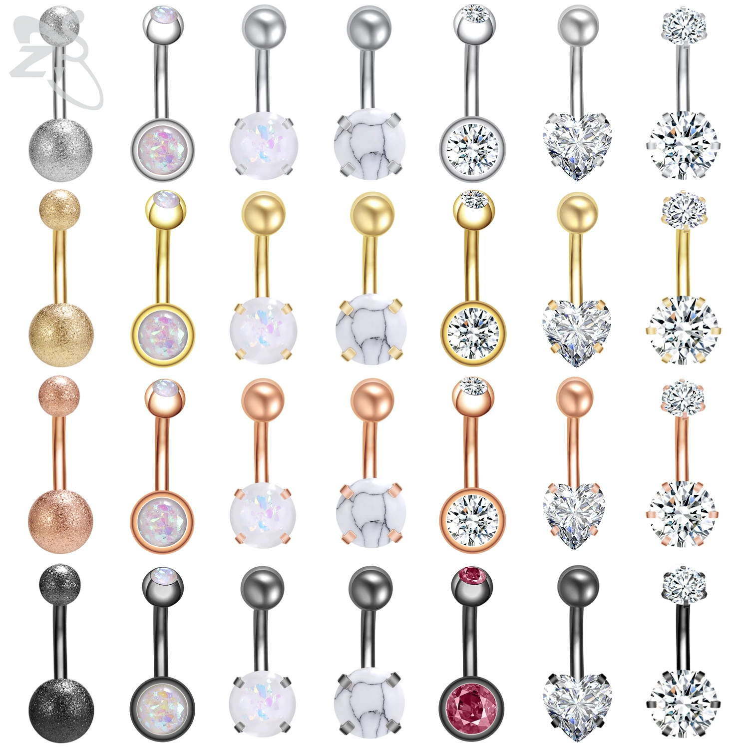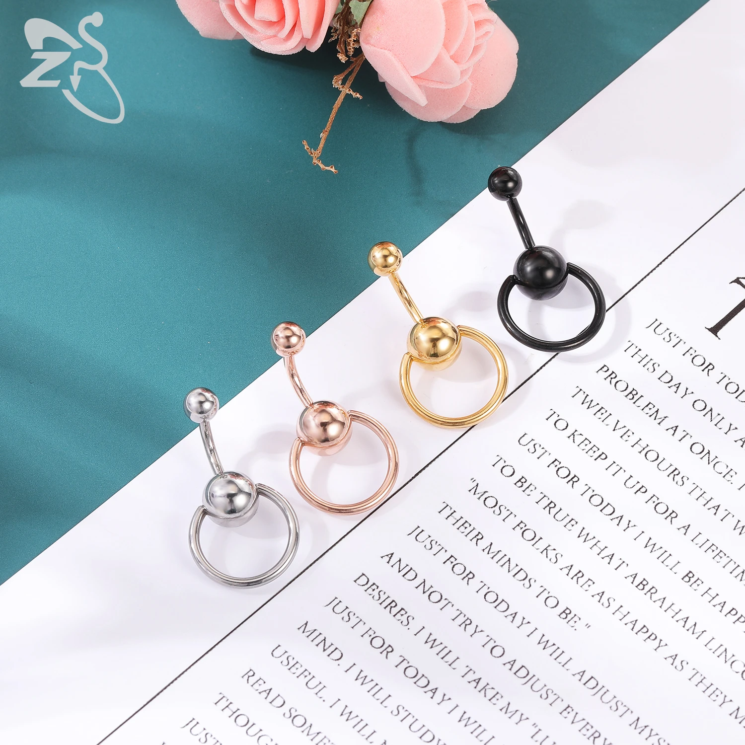 Кольцо для пупка женское из нержавеющей стали, 14 г, 4 цвета, с фианитом, шар 58 мм