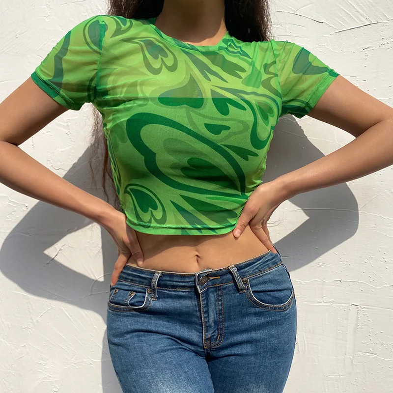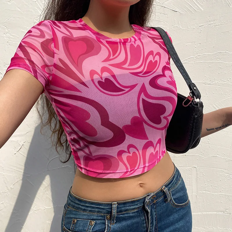 Топ женский сетчатый с принтом в виде сердца, винтажный сетчатый пу...